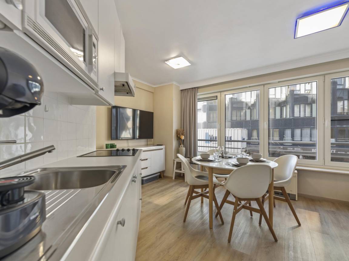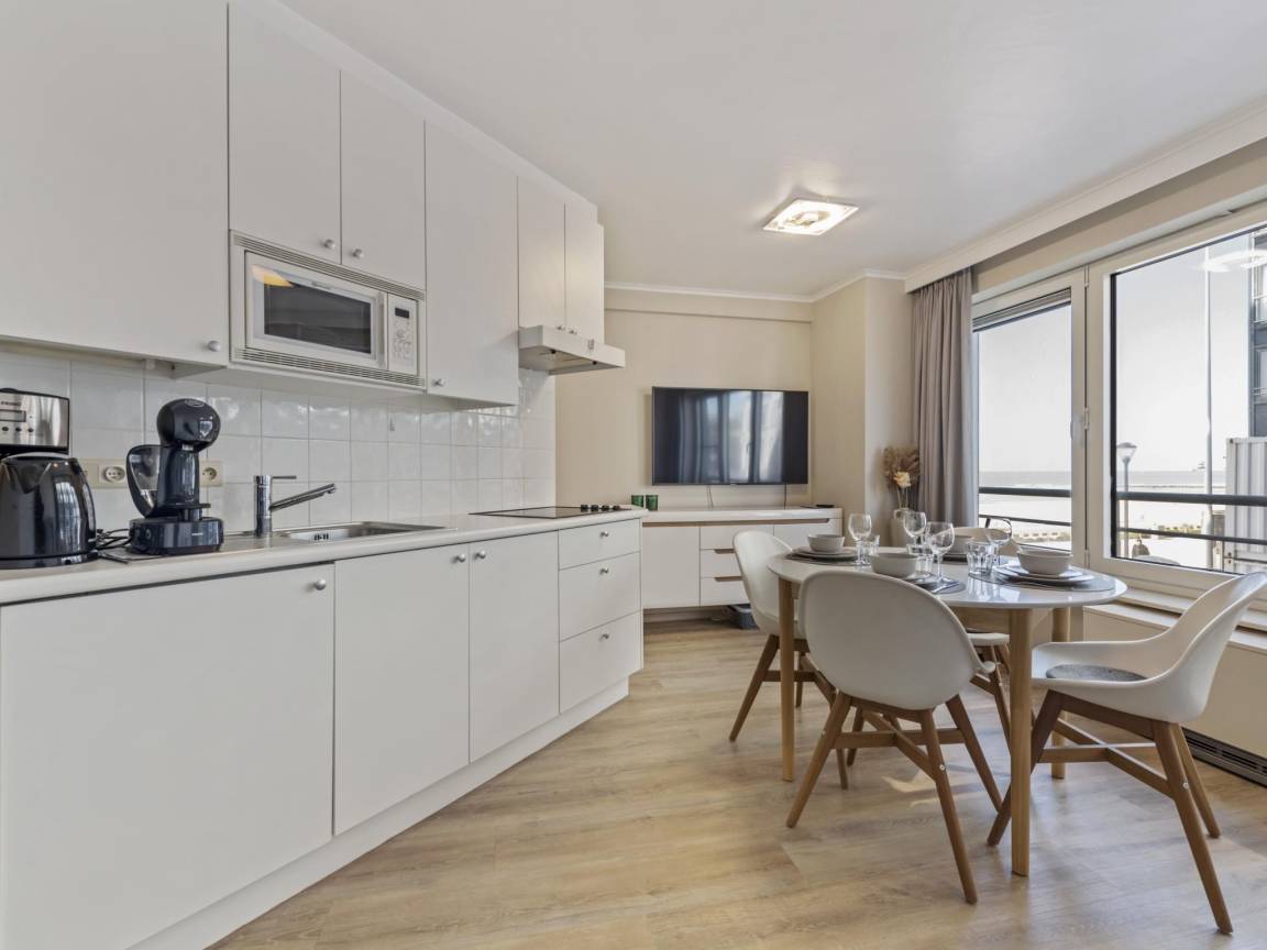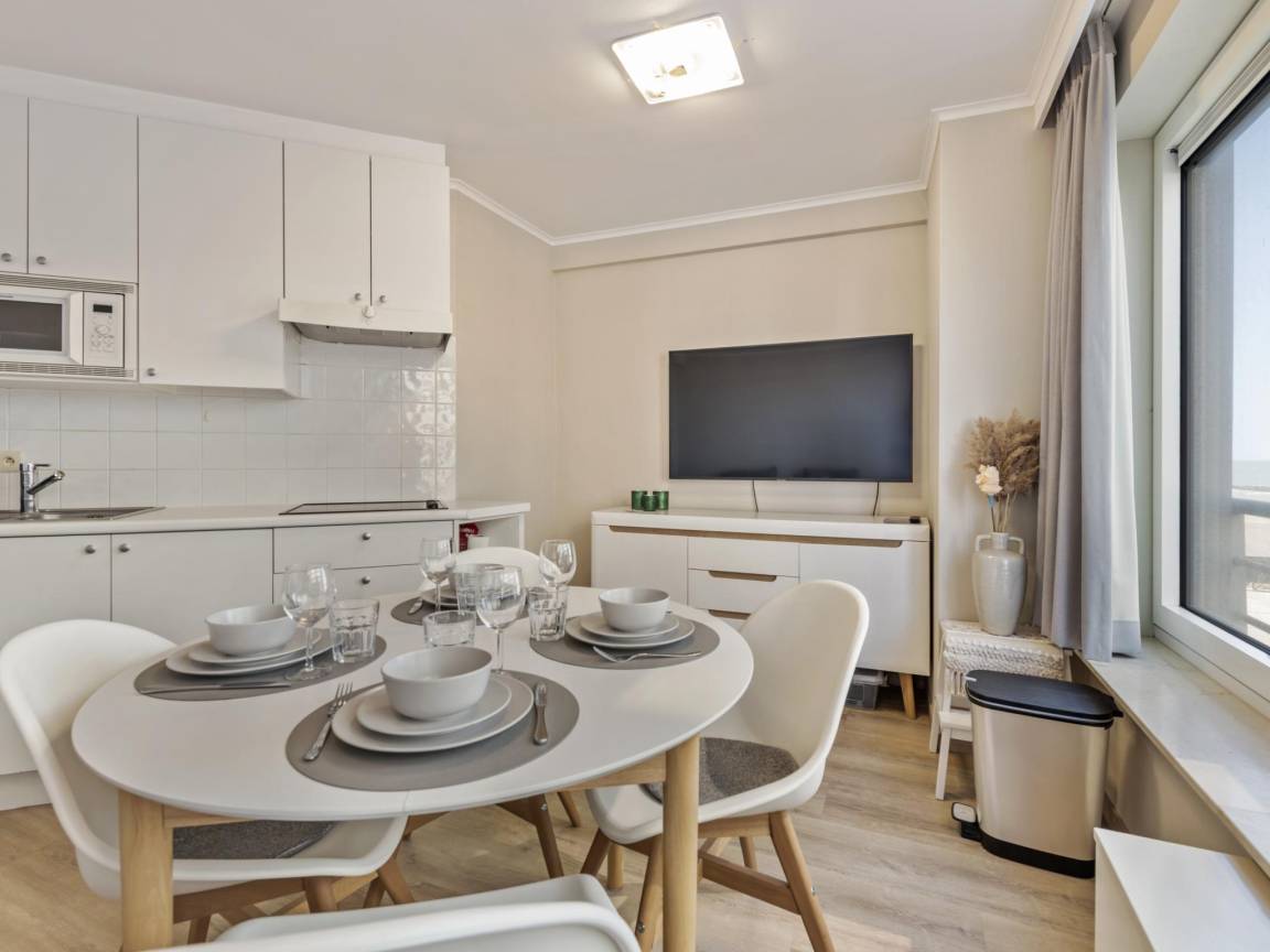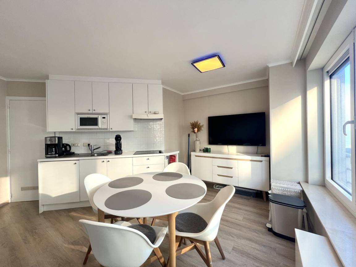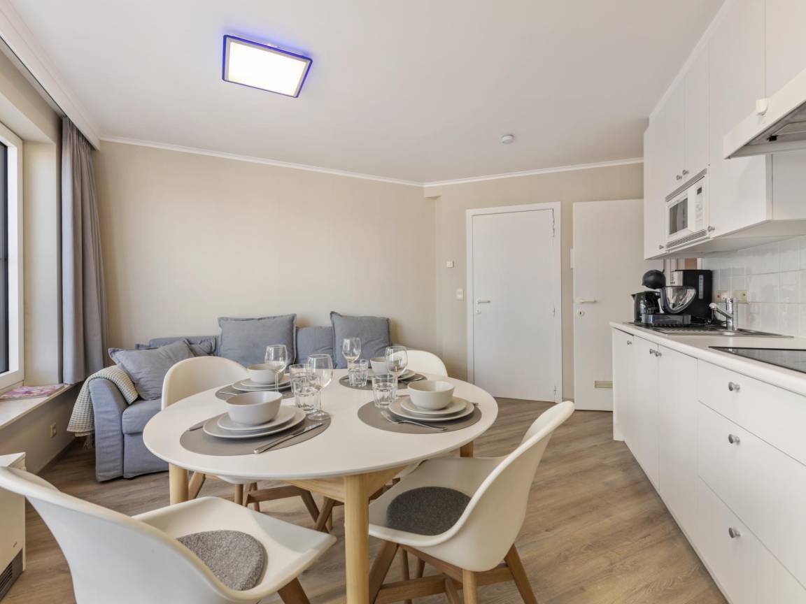 Hausbeschreibung : Diese gemütliche Wohnung am Meer befindet sich im ersten Stock eines Appartementkomplexes an der Küste, direkt im Zentrum von Westende. Die Wohnung ist sowohl über eine Treppe als auch über einen Aufzug zu erreichen, und nur 300 m entfernt gibt es einen Parkplatz. Sie ist komfortabel eingerichtet und verfügt über ein Wohnzimmer mit Fernseher, eine Küche mit Esstisch, ein Schlafzimmer und ein Badezimmer. Perfekt für einen entspannten Aufenthalt am Meer!