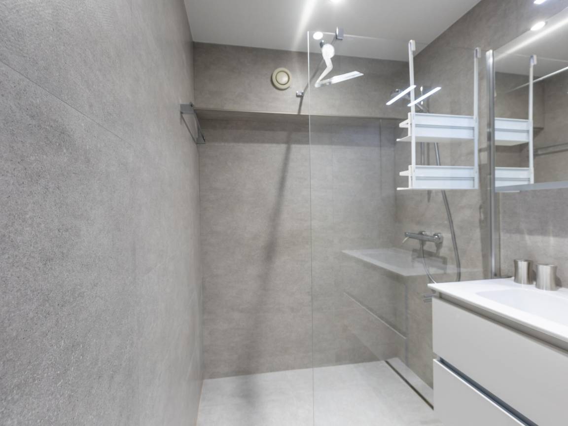 Hausbeschreibung : Geräumige und helle Wohnung im 4. Stock mit 2 Schlafzimmern: eines mit Doppelbett, eines mit Etagenbett. Wohnzimmer mit Schlafsofa für 2 und Terrasse mit schönem Meerblick. Voll ausgestattete offene Küche. Renoviertes Bad mit begehbarer Dusche und separates WC. Beide Schlafzimmer mit Zugang zur sonnigen Terrasse mit Blick ins Hinterland. Garage nur für kleine Autos oder Fahrräder geeignet.