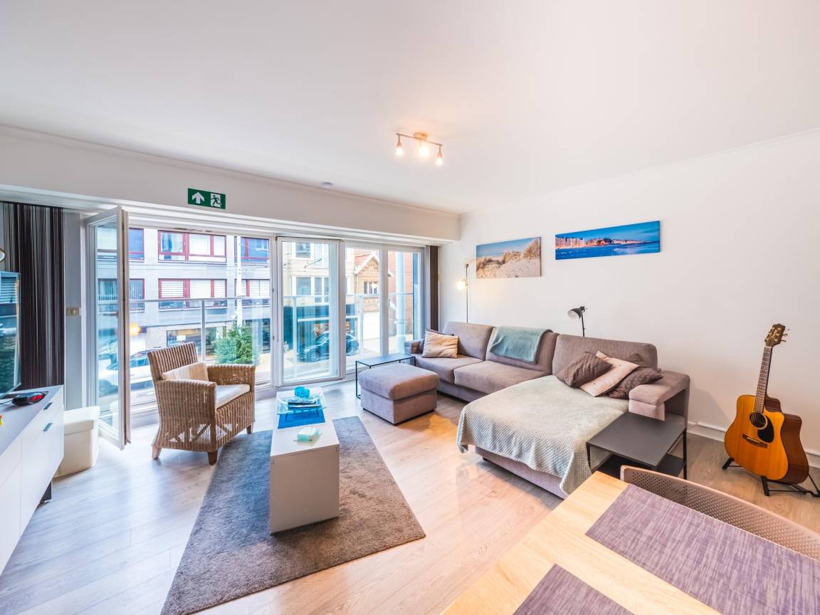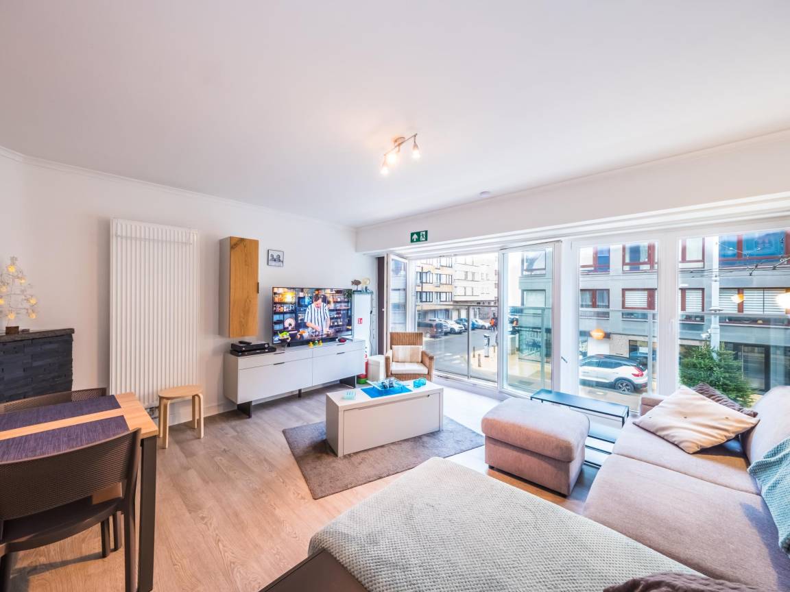 Hausbeschreibung : Studio im 1. Stock für einen komfortablen Aufenthalt am Meer. Schlafbereich mit Doppelbett (abschließbar) und geräumiges Wohnzimmer mit Schlafsofa für 2 Personen. Bodentiefe Fenster über die gesamte Breite sorgen für viel Licht und schönen Meerblick. Halboffene Küche und Bad mit WC. Toplage an der Promenade, nahe Geschäften und Tram.