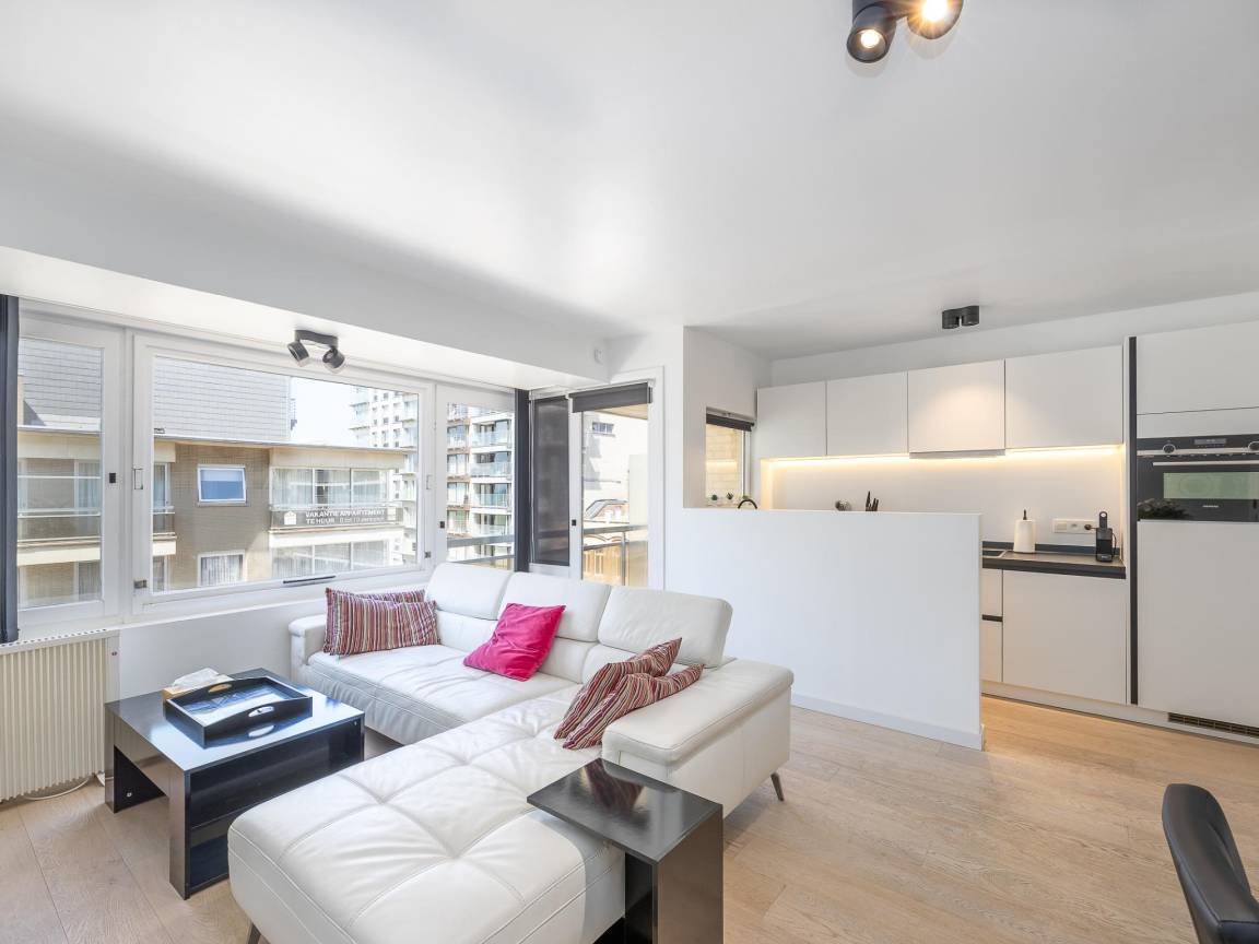 Hausbeschreibung : Modernes Apartment im 4. Stock mit zwei Schlafzimmern (beide mit Doppelbett), ideal für Paare oder Familien. Helles Wohnzimmer mit komplett ausgestatteter offener Küche und Zugang zu einer gemütlichen Terrasse mit Blick auf die Leopoldlaan. Badezimmer mit Walk-in-Dusche und separatem WC. Ein Schlafzimmer hat eine zusätzliche Terrasse hinten. Zentrale Lage nahe der Strandpromenade, Geschäften und ÖPNV.