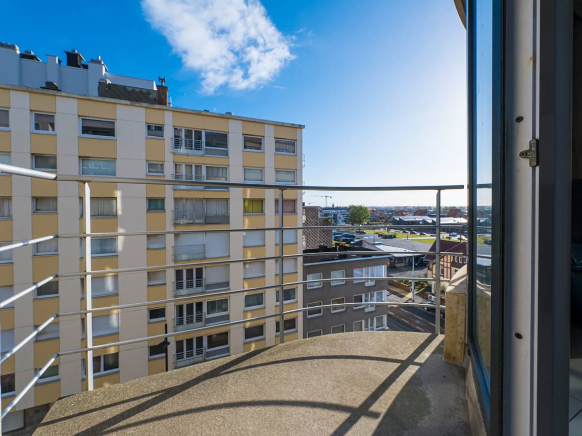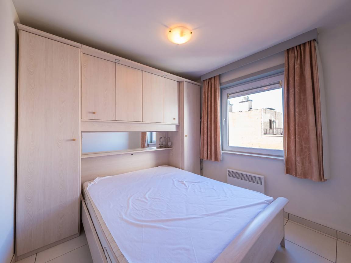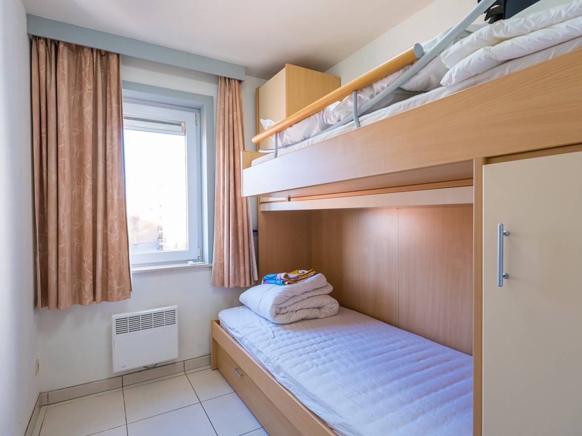 Hausbeschreibung : Wohnung im 6. Stock mit 2 Schlafzimmern: eines mit Doppelbett und eines mit Etagenbett und Ausziehbett, ideal für Familien. Gemütliches Wohnzimmer mit Zugang zur Terrasse mit seitlichem Meerblick. Voll ausgestattete offene Küche. Bad mit Dusche und WC. Ruhige Seitenstraße nahe der Promenade, Geschäfte und Tram fußläufig erreichbar.