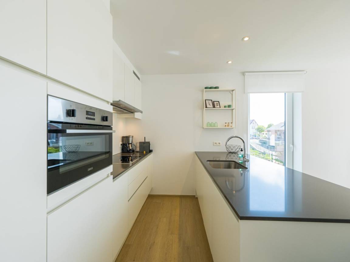 Hausbeschreibung : Helles, gemütliches Apartment im 1. Stock mit 2 Schlafzimmern: eines mit Doppelbett und eines mit zwei Einzelbetten (zu Doppelbett umwandelbar). Lichtdurchflutetes Wohnzimmer mit gemütlicher Terrasse. Offene, voll ausgestattete Küche, Abstellraum mit Waschmaschine/Trockner, modernes Bad mit Walk-in-Dusche. Beide Schlafzimmer führen auf eine große Sonnenterrasse. Ruhige, grüne Lage nahe Strand und Dünen.