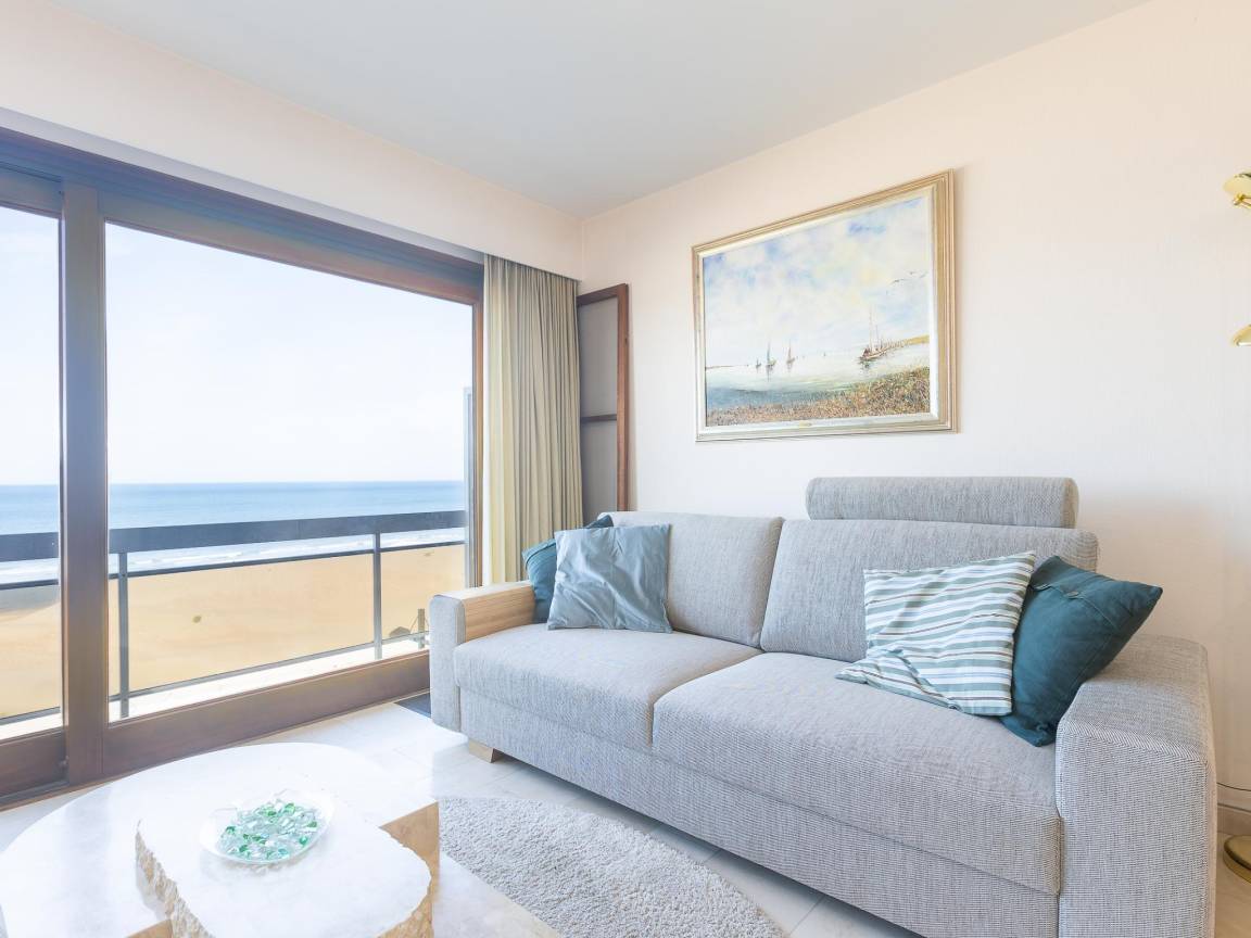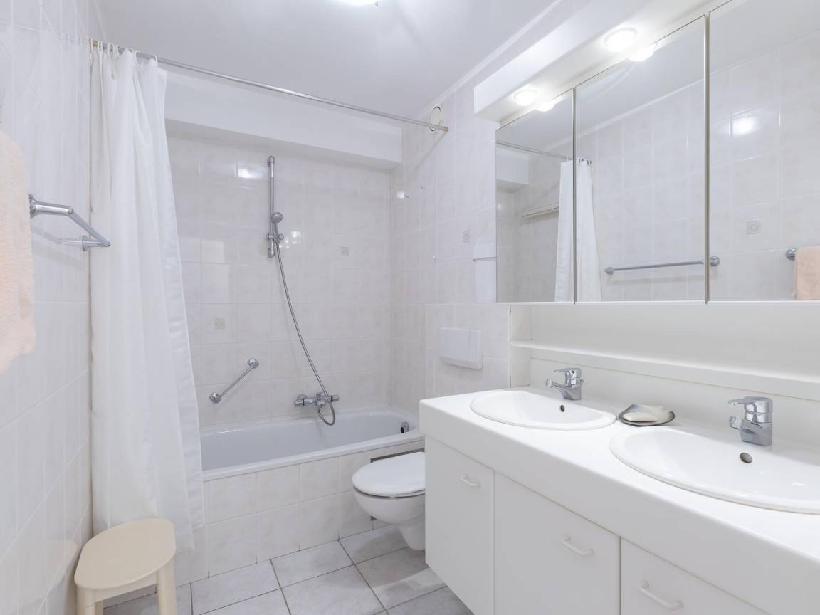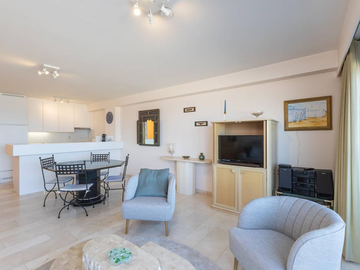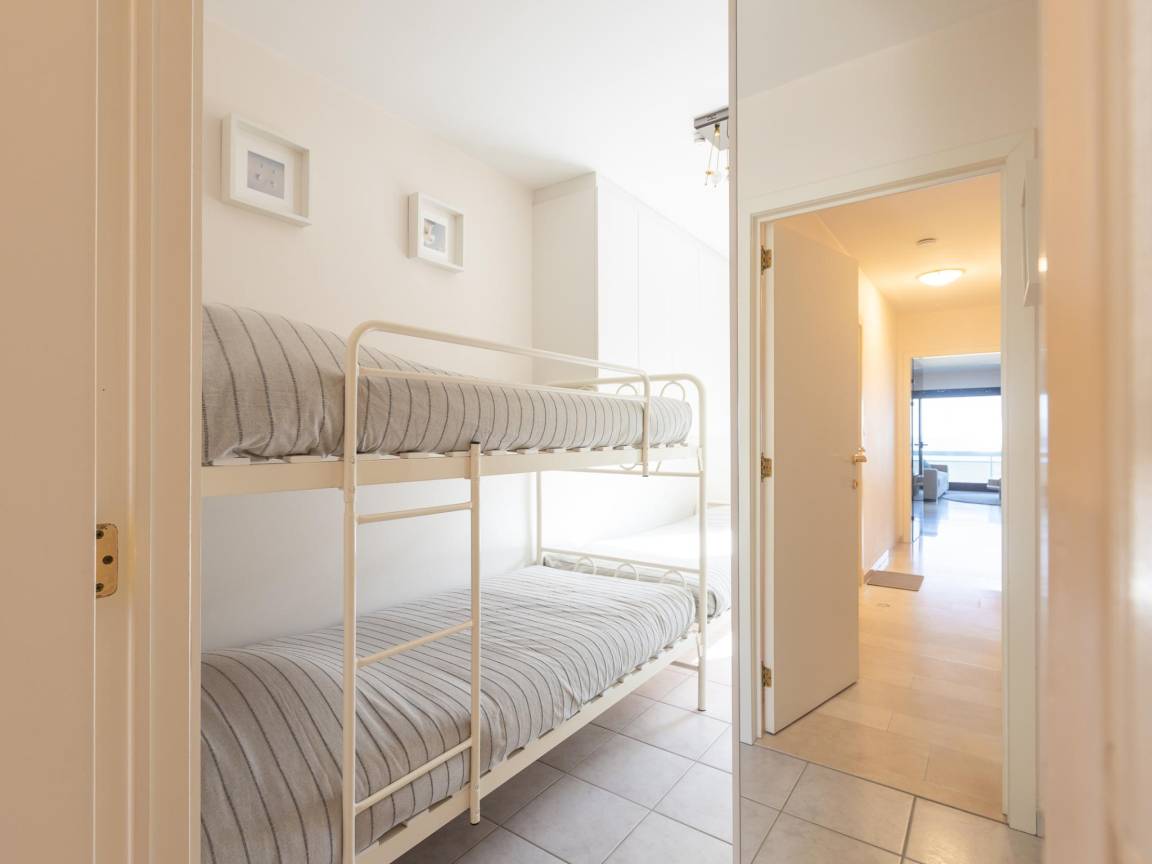 Hausbeschreibung : Geräumige Wohnung im 4. Stock, ideal nahe Geschäften und öffentlichen Verkehrsmitteln. 2 Schlafzimmer: eines mit Doppelbett und eines mit Etagenbett und Einzelbett. Helles Wohnzimmer mit Terrasse und schönem Meerblick. Voll ausgestattete offene Küche. Bad mit Badewanne/Dusche, Doppelwaschbecken und WC separates WC. Kleiner Balkon hinten.