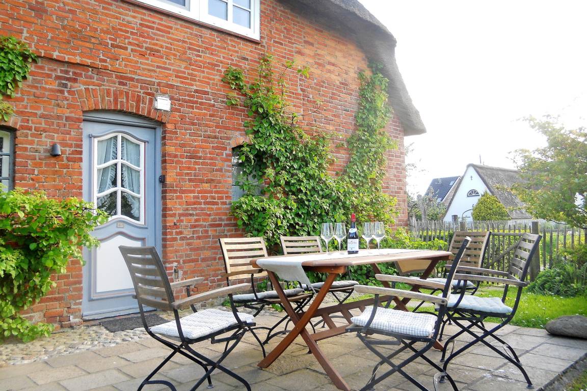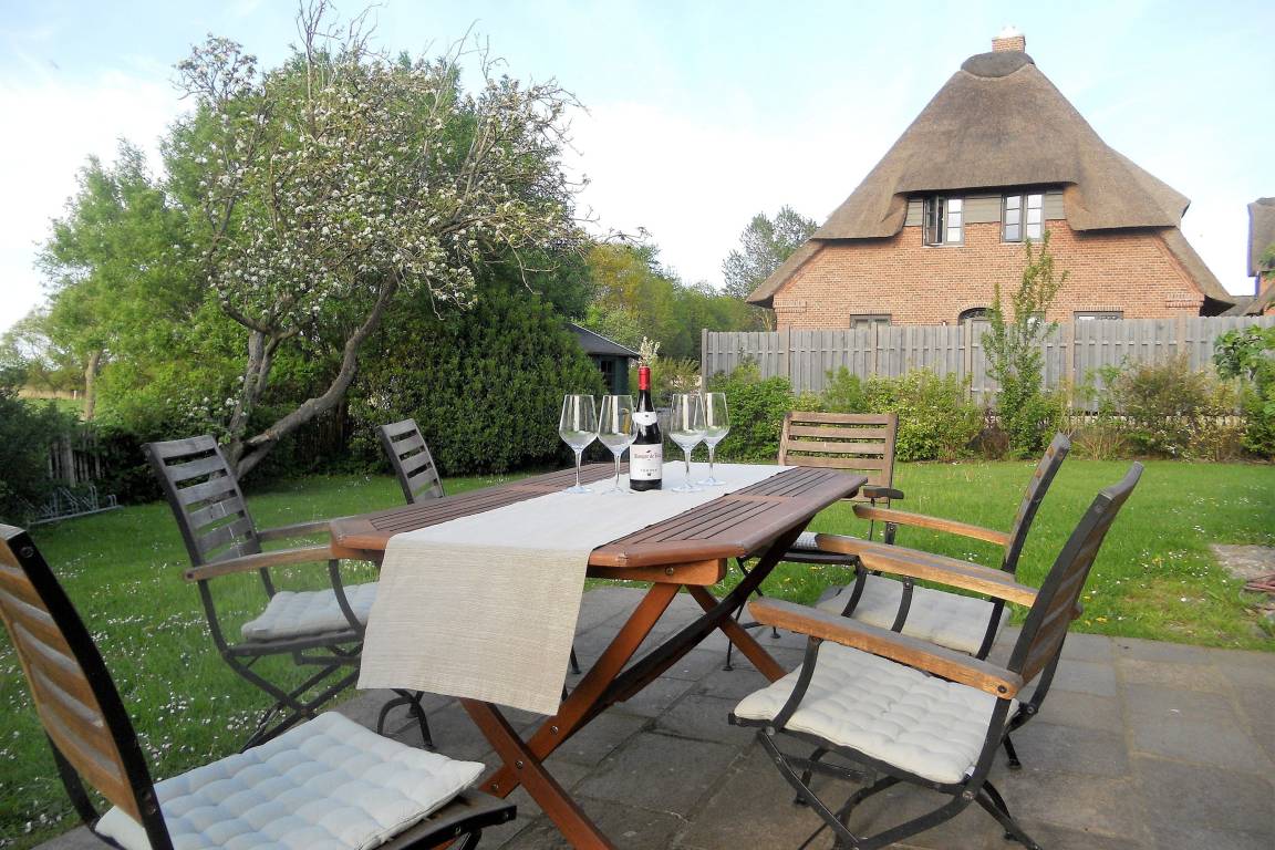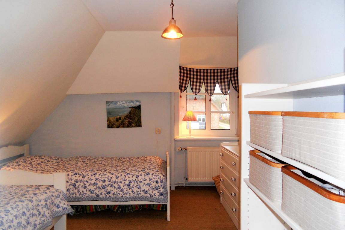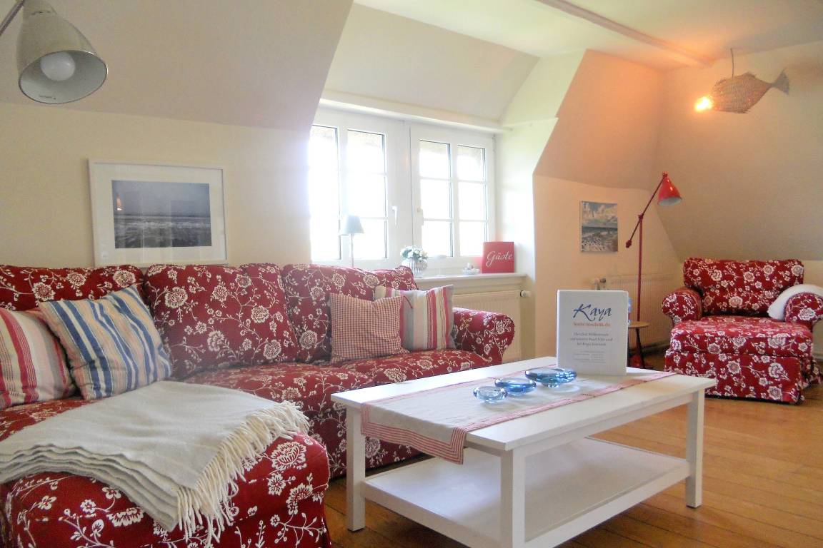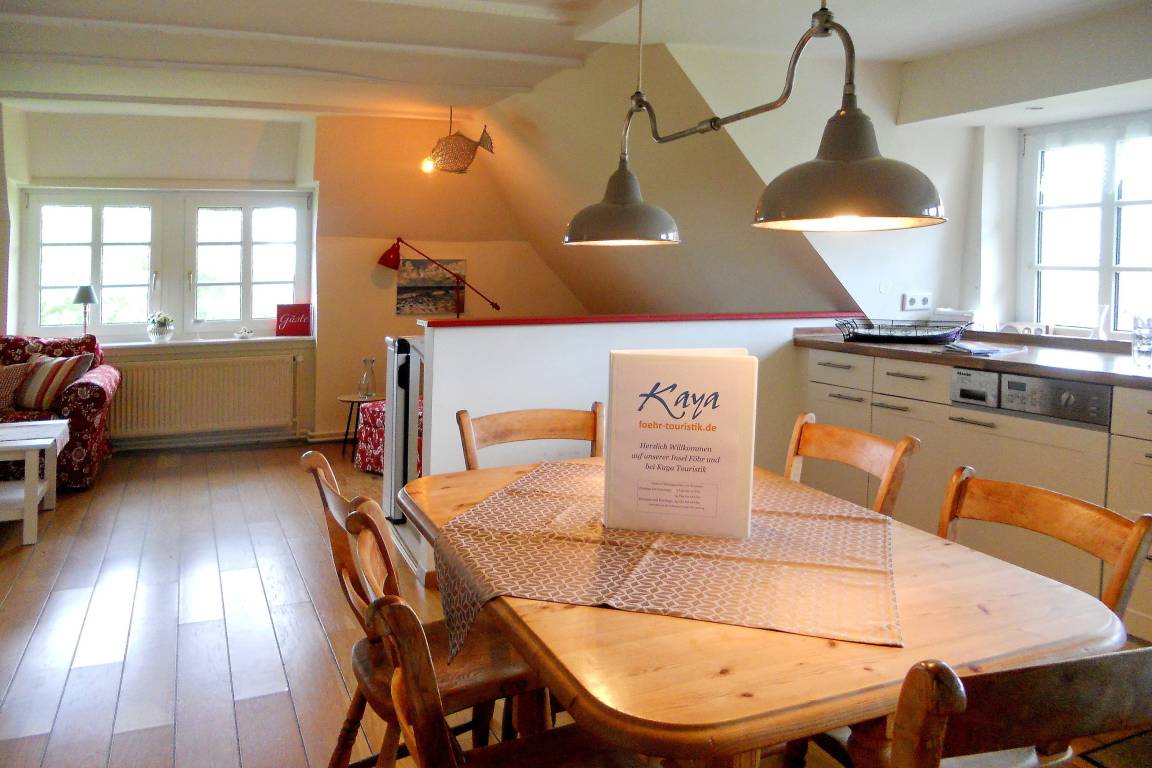 Die Obergeschosswohnung "Peppin" bietet bis zu sechs Personen herrliche Urlaubstage im ruhigen Ort Midlum- ca. 5 Kilometer von der Stadt Wyk entfernt. Über die eigene Terrasse gelangen Sie durch einen separaten Eingang in die Wohnung mit dem im Erdgeschoss befindlichen Badezimmer. Von hier aus führt eine Treppe hinauf zu dem großen Wohnbereich mit integrierter Wohnküche. Friesische Gastfreundlichkeit heißt Sie willkommen und lässt Sie sich sogleich Wohlfühlen. Drei abgehende Schlafzimmer, eines mit Doppelbett (180 x 200 cm) und die anderen beiden mit je zwei Einzelbetten (2x 100 x200 cm und 2x 80x 190cm), versprechen ruhige Nächte nach aufregenden Urlaubstagen. Die Wohnung ist liebevoll eingerichtet und gut ausgestattet. Ihr vierbeiniger Freund (max. 2 Hunde) ist hier ebenfalls Willkommen und wird sich über die weitreichende Marsch, die zu Spaziergängen einlädt, freuen.