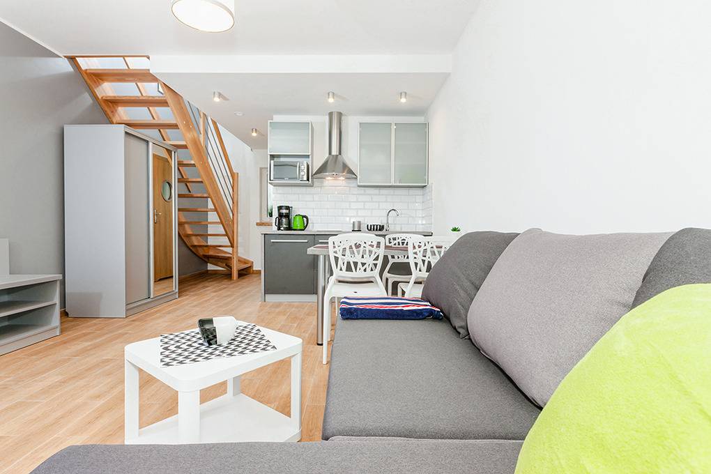 Nebenkosten: Endreinigung 250 Zl. Kurtaxe. Bettwäsche, Handtücher vorhanden. Zusätzliche Leistungen: Kostenloser Internetzugang über W-Lan. 1 Pkw-Stellplatz im Preis inklusive, 2. Stellplatz auf Anfrage 30 Zl./Tag. Zusätzlicher Bettwäschewechsel 20 Zl./Person. Kaution 100 €. Kinder Babybett/Hochstuhl nur innerhalb der maximalen Personenzahl, jeweils ohne Berechnung (Bestellung). Haustier 50 Zl./Tag (Anmeldung) (Max 2 Hunde).Räume & Aufteilung