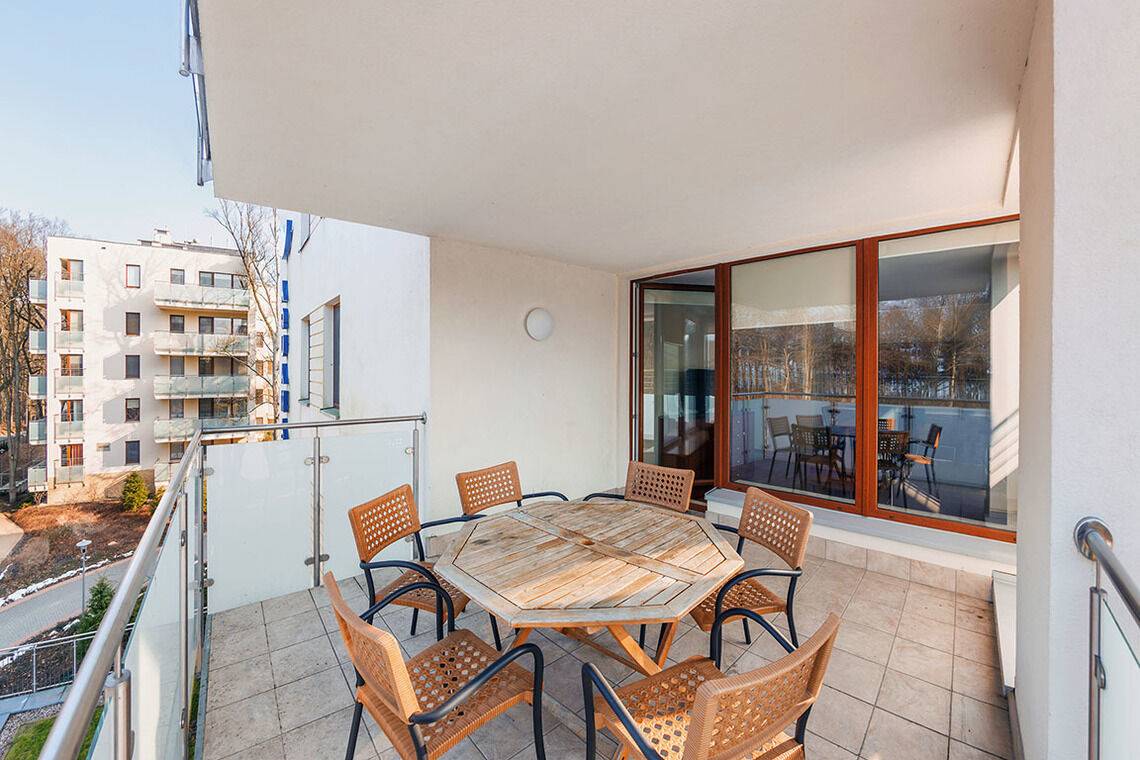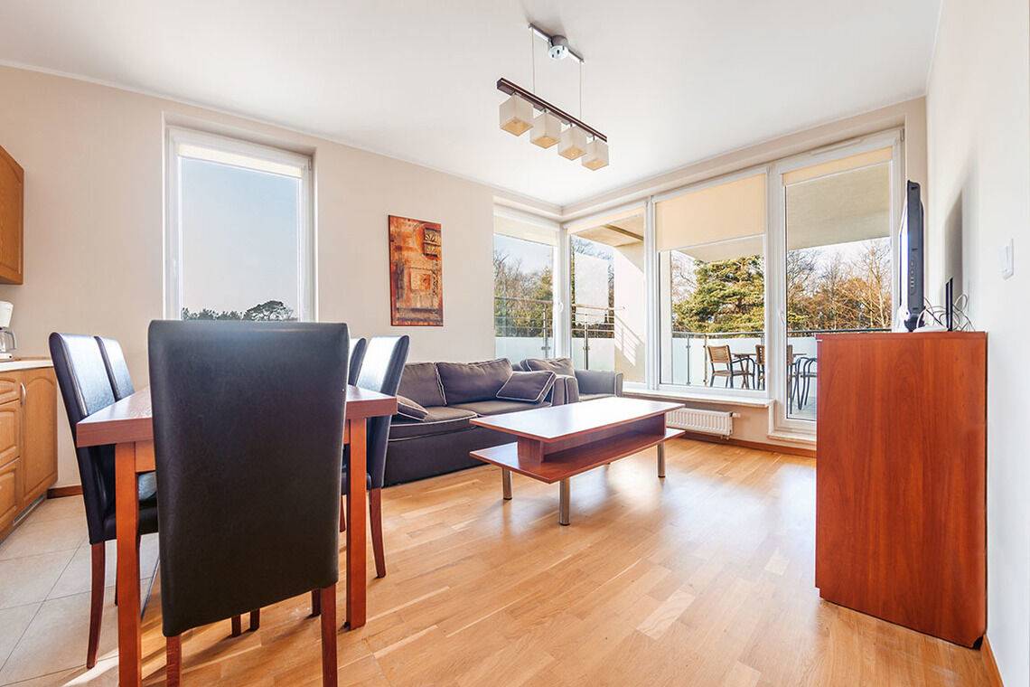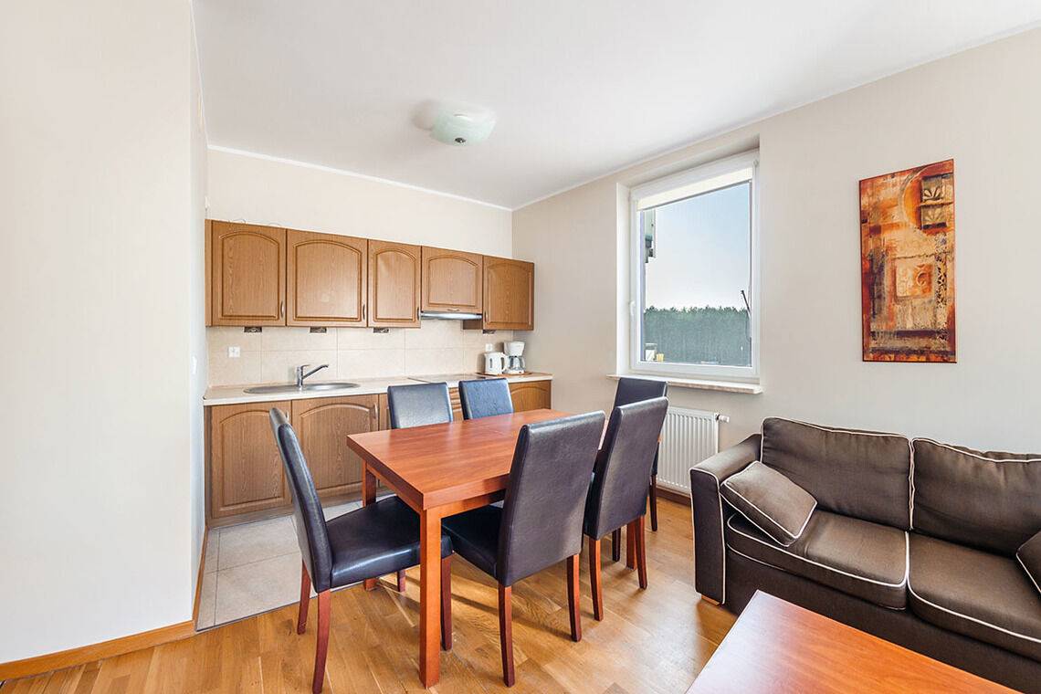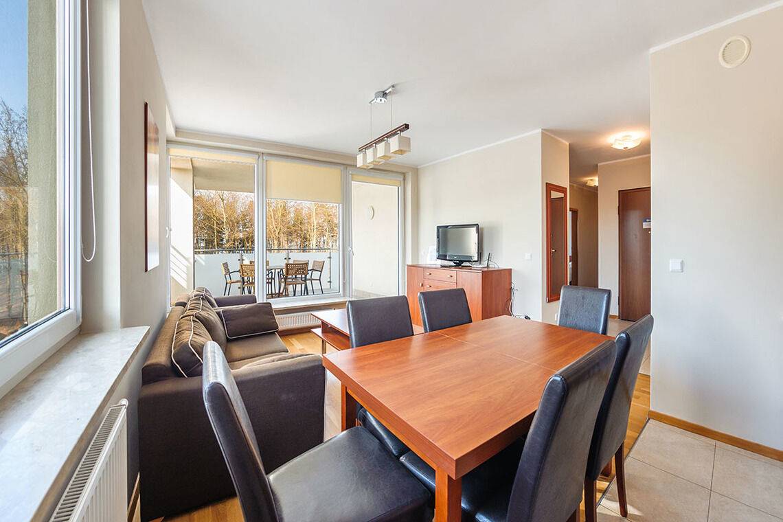 Aquamarina ist ein modernes Apartmentkomplex. Es befindet sich direkt am Wald, was die Nähe zur Natur fördert. Um den Strand zu erreichen, muss man nur eine Düne überqueren. Die Lage ist ideal für Menschen, die Ruhe und Entspannung schätzen. Die Apartments sind komfortabel eingerichtet und ausgestattet, die Fenster der meisten von ihnen sind zum Wald hin ausgerichtet.