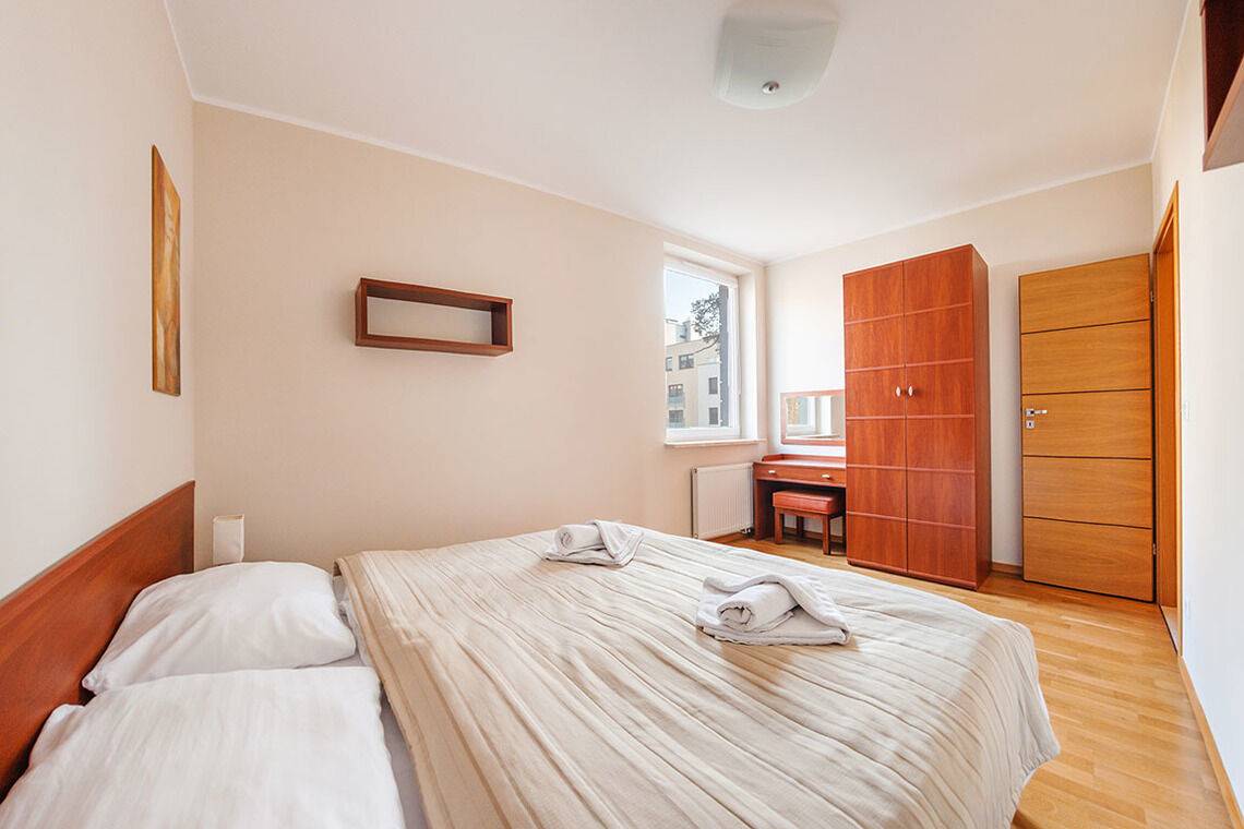 • Haustiere sind in der ausgewählten Wohnung erlaubt. Die Kosten für den Aufenthalt mit einem Haustier betragen 40 PLN pro Tag.