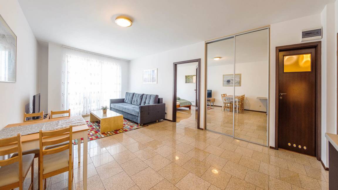 • Haustiere sind in der ausgewählten Wohnung erlaubt. Die Kosten für den Aufenthalt mit einem Haustier betragen 40 PLN pro Tag.
