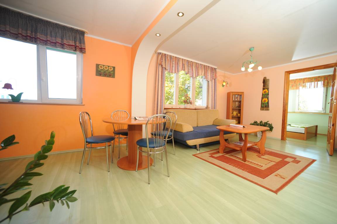 PL 10.9A Wohnung 2-6 Pers.: Freundliche 2-Zimmerwohnung mit ca. 55 qm Wohnfläche, 1. Etage. Wohn-/Essraum mit Sitzgruppe (2 Schlafsofas à 2 Pers.), Kabel-TV, Esstisch, moderner Küchenzeile (2 E-Platten). Doppelzimmer. Bad/WC.