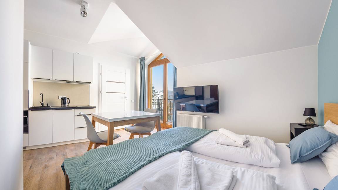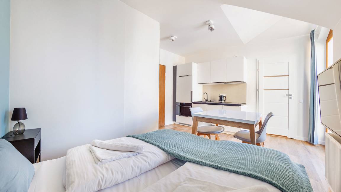 • Haustiere sind in der ausgewählten Wohnung erlaubt. Die Kosten für den Aufenthalt mit einem Haustier betragen 40 PLN pro Tag.