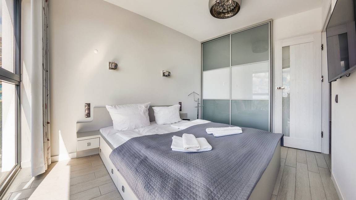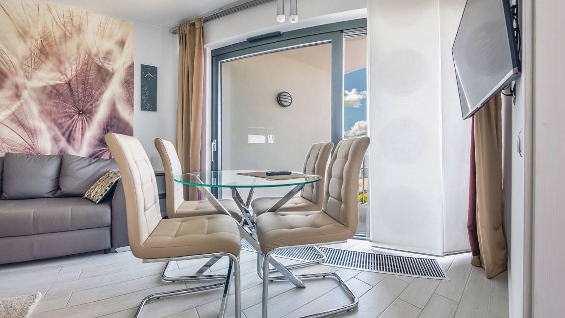 • Haustiere sind in der ausgewählten Wohnung erlaubt. Die Kosten für den Aufenthalt mit einem Haustier betragen 40 PLN pro Tag.