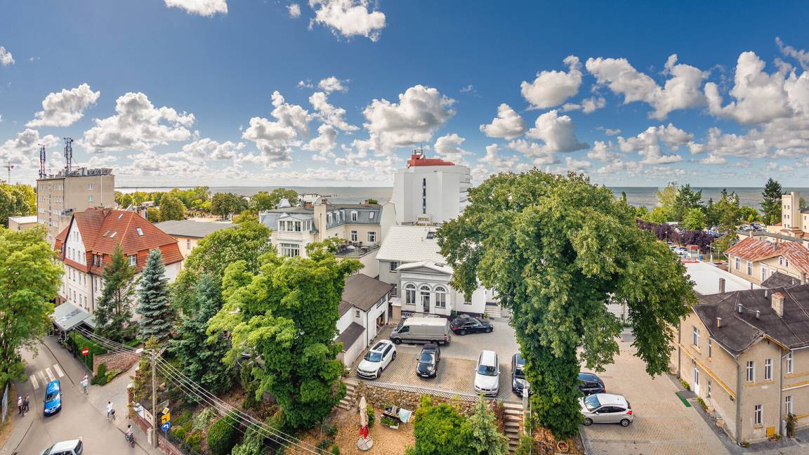 Die Apartments befinden sich im Herzen von Międzyzdroje, in der Nähe des Strandes und des Stadtzentrums. Die Anlage ist eingezäunt und bewacht, was den Gästen Komfort und Sicherheit bietet.