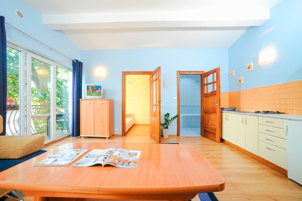 Nebenkosten Strom nach Verbrauch (nur im Zeitraum 17.1.-30.5.26 und 12.9.26-23.1.27). Kurtaxe. Bettwäsche vorhanden. Handtücher mitzubringen. Zusätzliche Leistungen Kostenloser Internetzugang über W-Lan. Kaution 50 €. Kinder Babybett nur innerhalb der maximalen Personenzahl ohne Berechnung. Hochstuhl ohne Berechnung (Bestellung). Haustier erlaubt 10 Zl./Tag (Anmeldung, max. 2 Hunde).Räume & Aufteilung