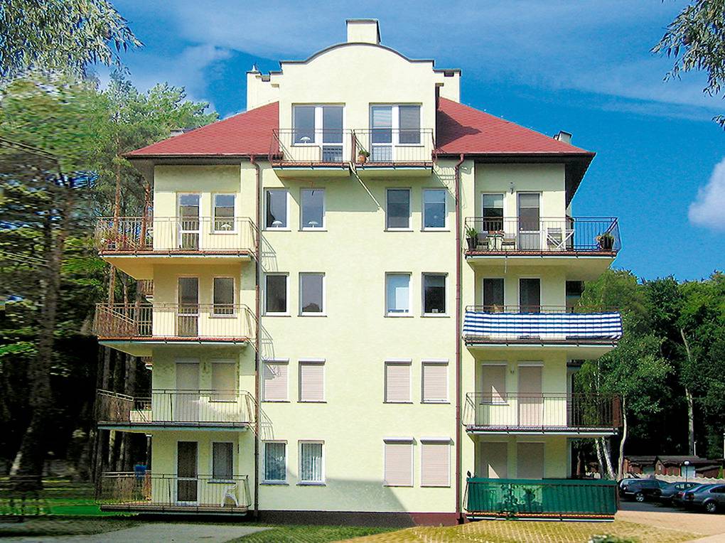 Ort: Ostseebad Miedzyzdroje (Misdroy). Erstklassige, ruhige Lage am Ortsrand. Ostseestrand 120 m. Einkaufen, Restaurant 150 m. Ortsmitte mit Geschäften 800 m. Seebrücke 1,3 km. Hotelhallenbad mit Sauna, Wellnessbereich 120 m.