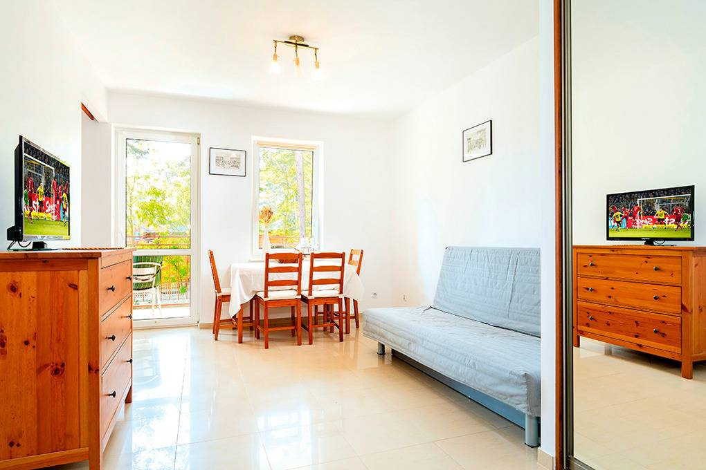 PL 10.23A Wohnung 2-4 Pers.: Freundliche 2-Zimmerwohnung mit 35 qm Wohnfläche, 1. Etage. Wohn-/Essraum mit Sitzgarnitur (Schlafsofa 2 Pers.), Sat-TV, Esstisch, kleiner Küchenzeile (2 E-Platten). Doppelzimmer. Bad/WC. Balkon mit Sitzmöbeln.