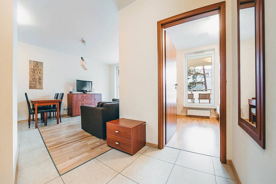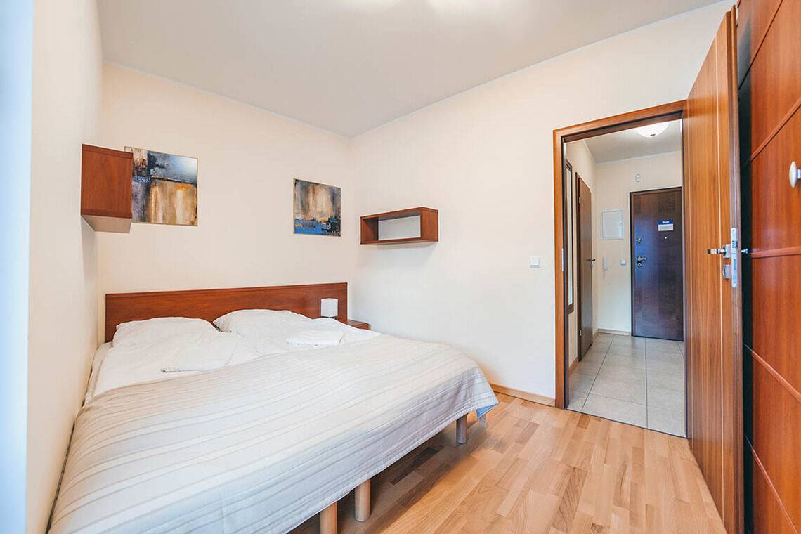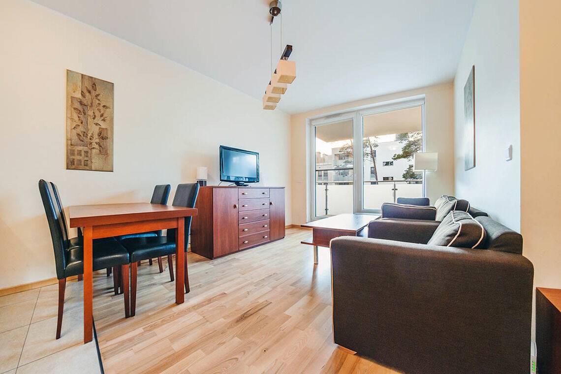• Haustiere sind in der ausgewählten Wohnung erlaubt. Die Kosten für den Aufenthalt mit einem Haustier betragen 40 PLN pro Tag.