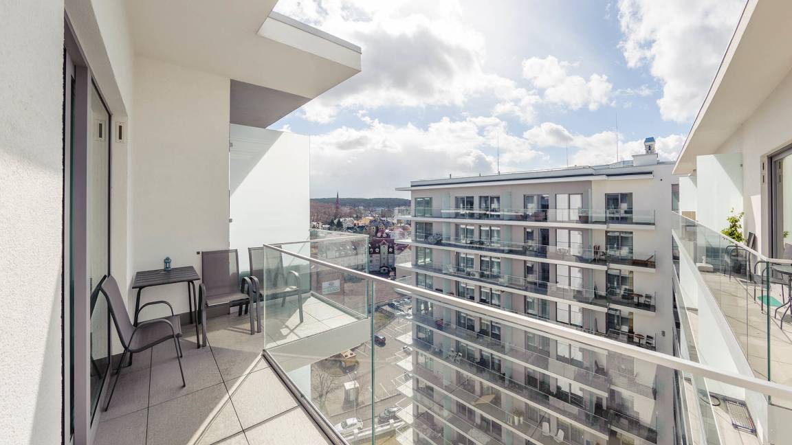 Die Apartments im Balticus-Komplex bieten wunderschöne Ausblicke auf das Meer. Viele von ihnen liegen strandnah – ein großer Vorteil für Liebhaber von Meeresbädern. Zudem befindet sich das Objekt nur 50 Meter vom nächsten Restaurant und Geschäft entfernt, was einen komfortablen Zugang zu allen notwendigen Dienstleistungen gewährleistet.