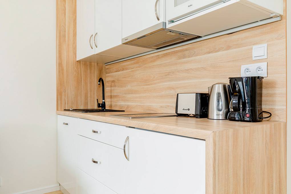 Haus: Schöne Residenz mit modernen, komfortablen Ferienwohnungen. Aufzug im Haus. Geschmackvolle, moderne Einrichtung. Kostenloser Internetzugang über WiFi. Zentralheizung. Ein Pkw-Stellplatz/Fewo auf dem umzäunten Grundstück.