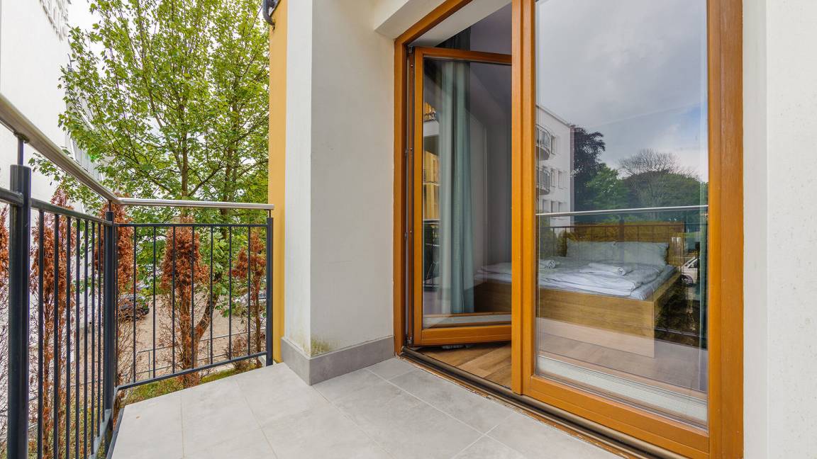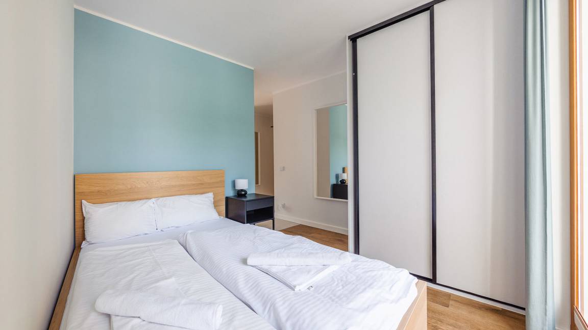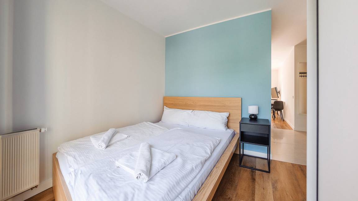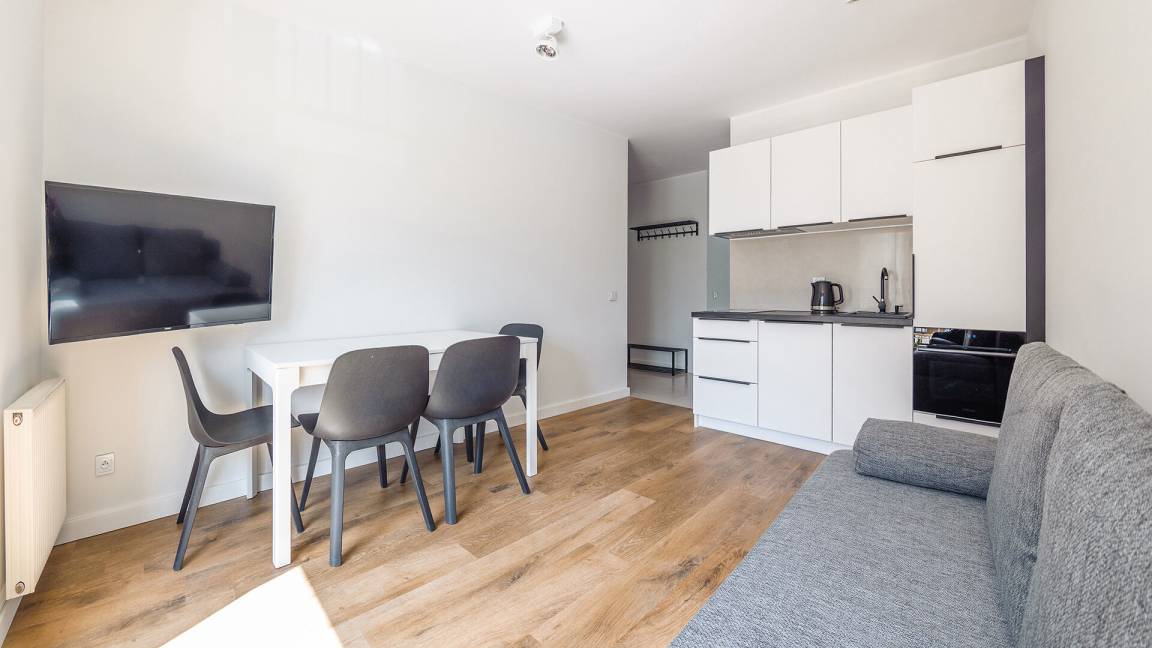 • Haustiere sind in der ausgewählten Wohnung erlaubt. Die Kosten für den Aufenthalt mit einem Haustier betragen 40 PLN pro Tag.