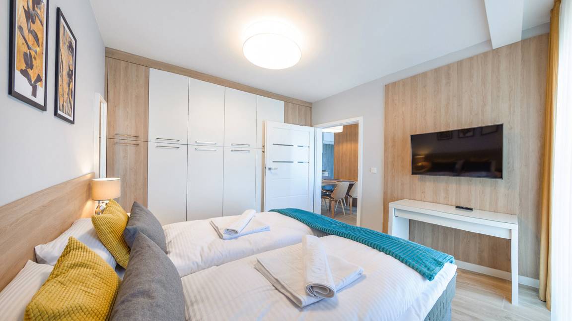 • Haustiere sind in der ausgewählten Wohnung erlaubt. Die Kosten für den Aufenthalt mit einem Haustier betragen 40 PLN pro Tag.