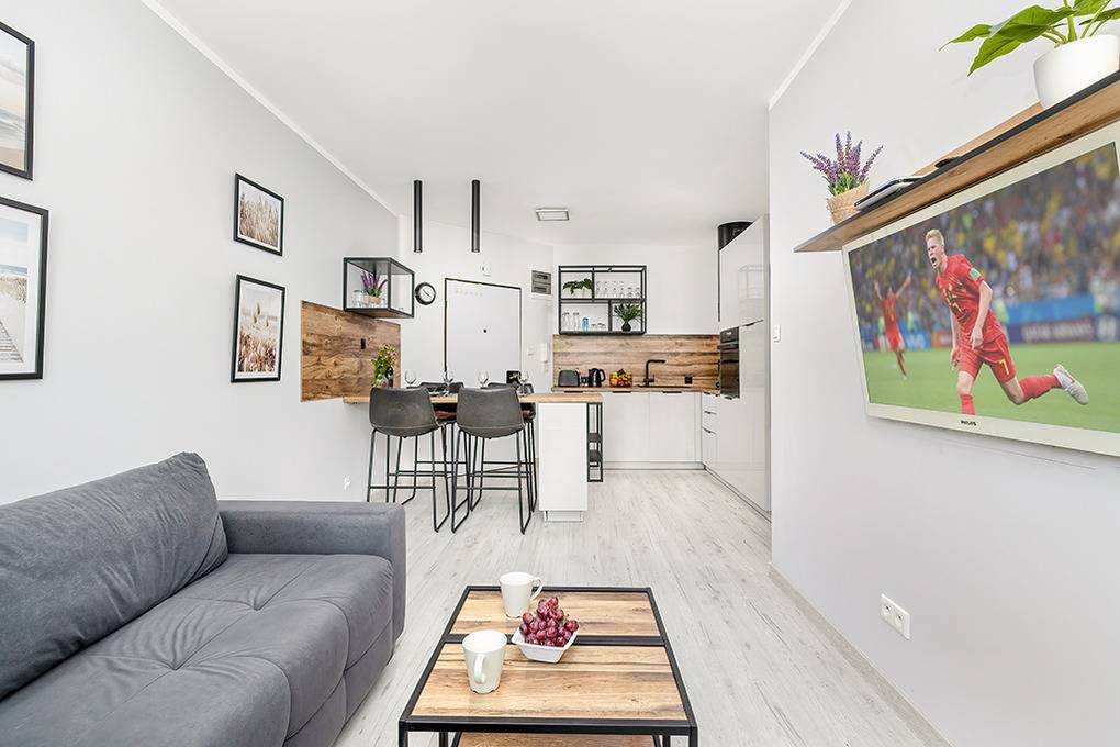 PL 10.22 Wohnung 2-4 Pers.: Gemütliche 2-Zimmerwohnung mit 42 qm Wohnfläche, 1. Etage. Lichtdurchfluteter Wohn-/Essraum mit Sitzgarnitur (Schlafsofa 2 Pers.), Esstisch, moderner Küchenzeile (4 E-Platten Induktionsfeld, Backofen, Mikrowelle, Dunstabzug, Gefrierfach 15 l. Spülmaschine). Flachbild Sat-TV (SMART) mit dt Programmen. Klimaanlage. Doppelzimmer mit Klimaanlage. Bad: ebenerdige Dusche, Wb, WC, Waschmaschine. Balkon mit Sitzmöbeln.