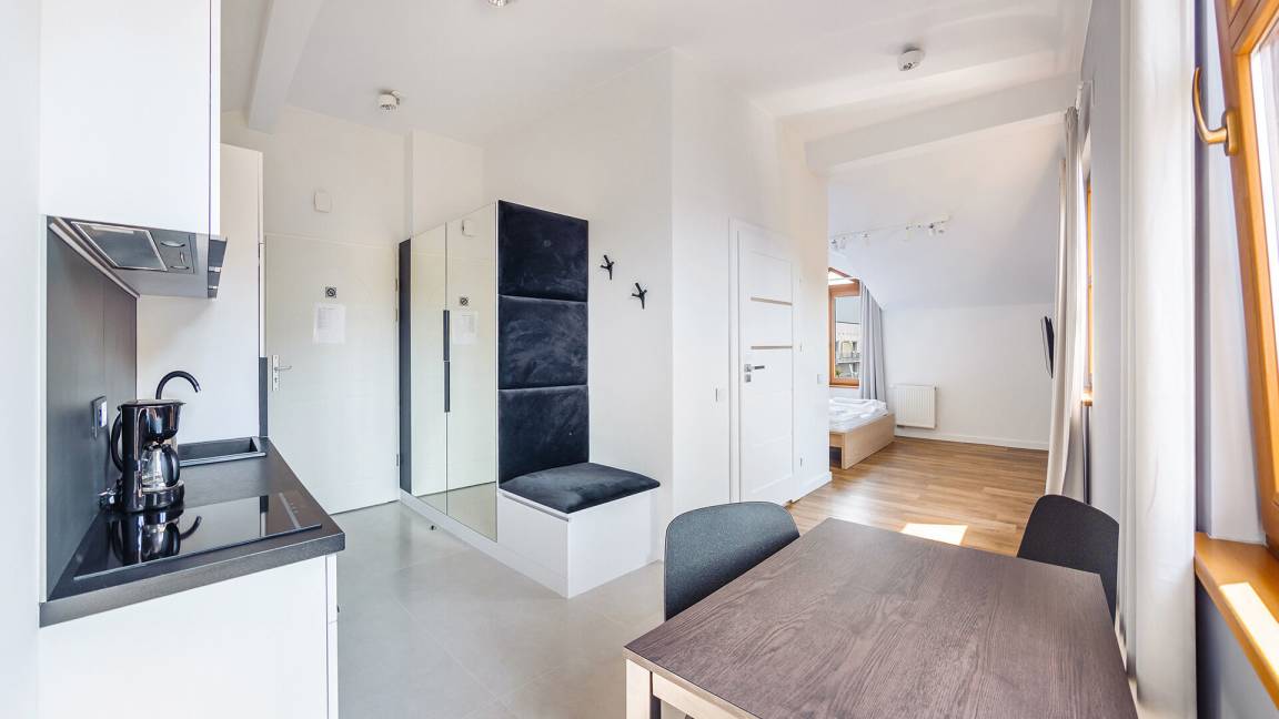 • Haustiere sind in der ausgewählten Wohnung erlaubt. Die Kosten für den Aufenthalt mit einem Haustier betragen 40 PLN pro Tag.
