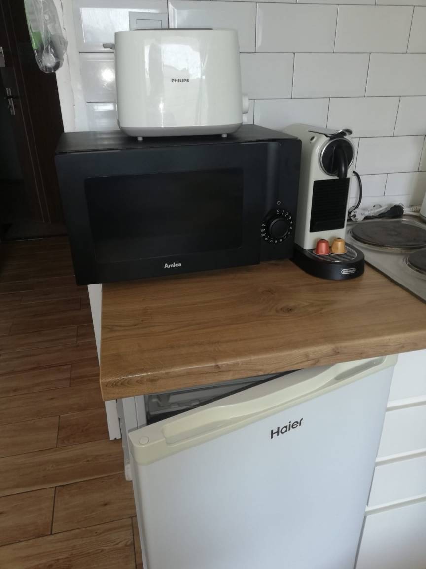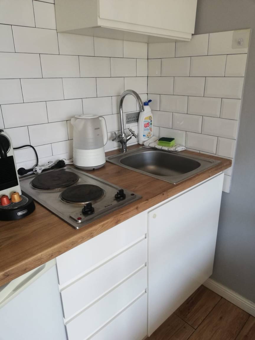 - Kleine Küche mit 2 Herdplatten, Wasserkocher, Tee, Nespresso Maschine, Kaffee zum Selbermachen inklusive. Mikrowelle und Toaster vorhanden.