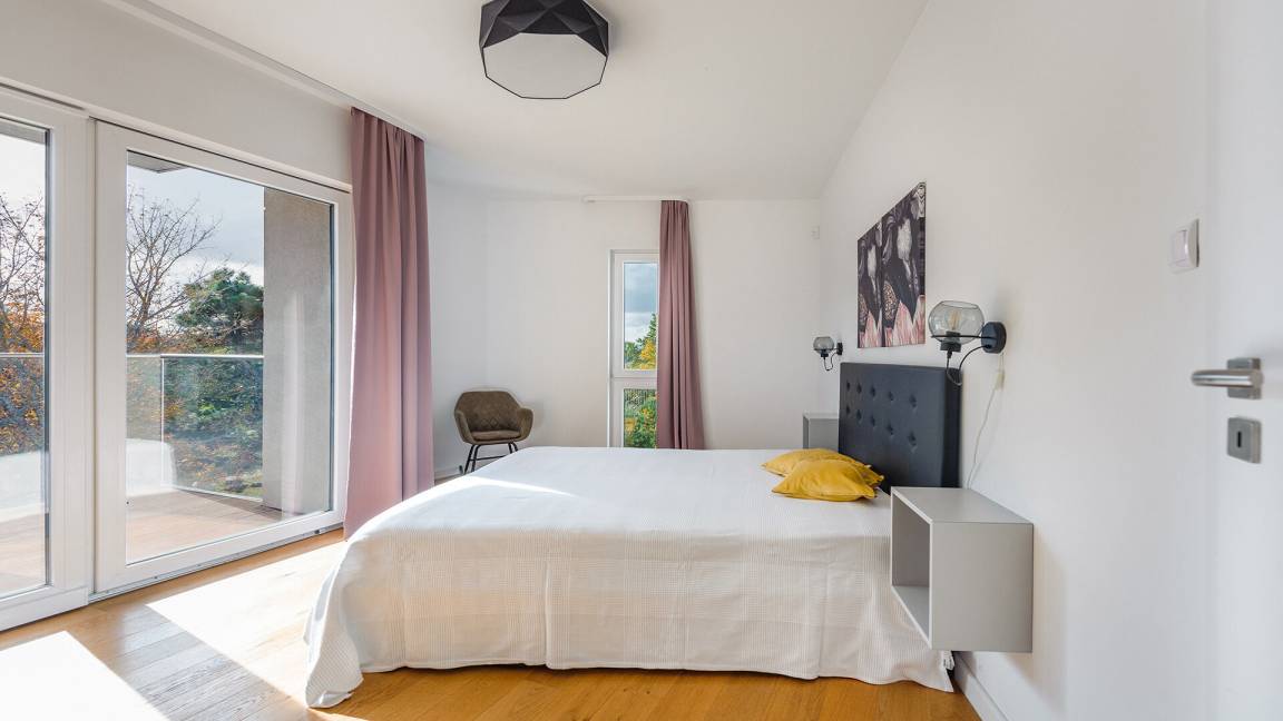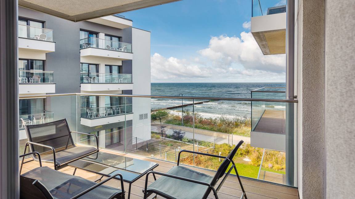 Ein modernes Apartmentgebäude direkt neben dem Strand und dem Zentrum von Mielno.