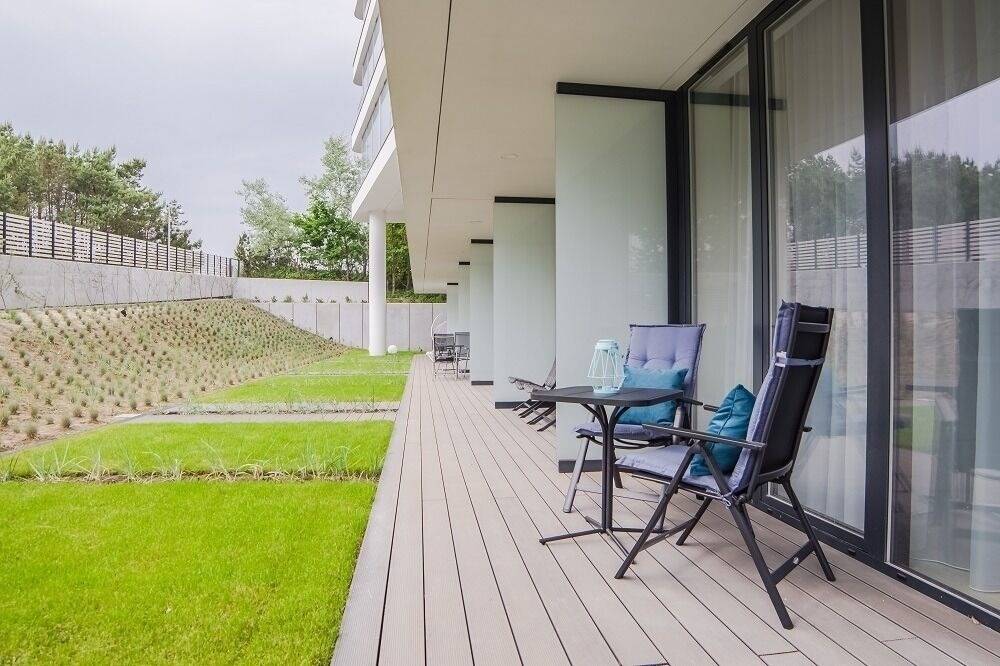 Das Gebäude bietet den Bewohnern einen direkten Zugang zum Strand.