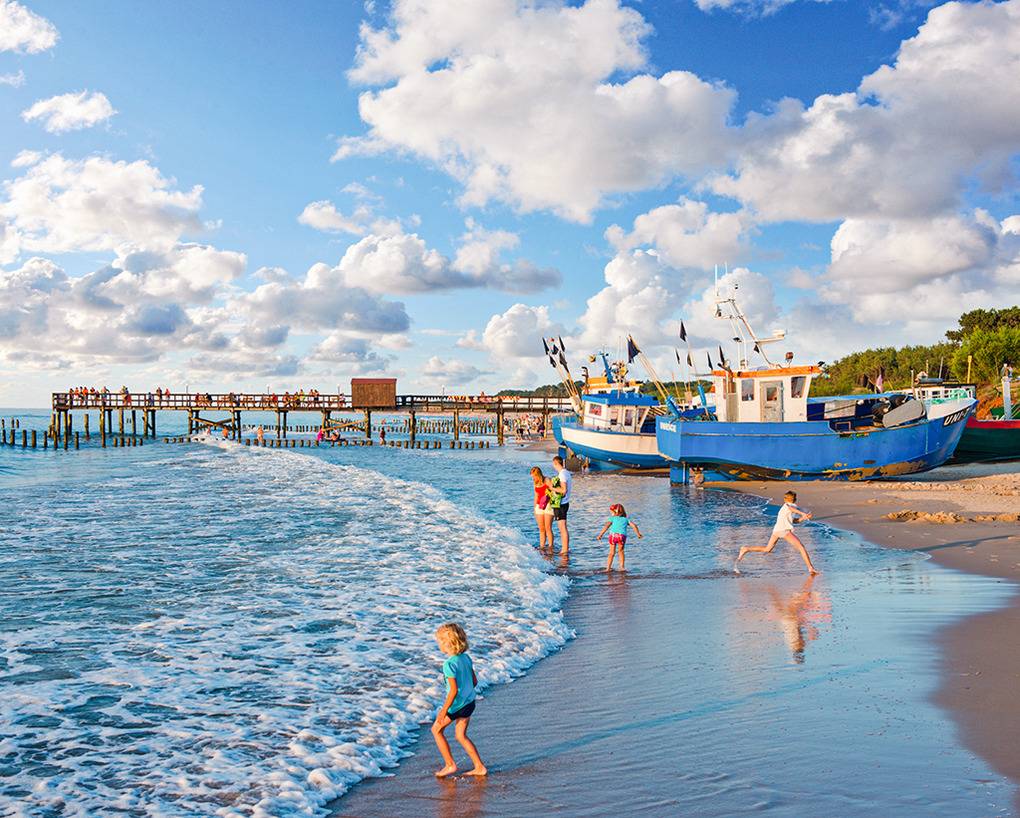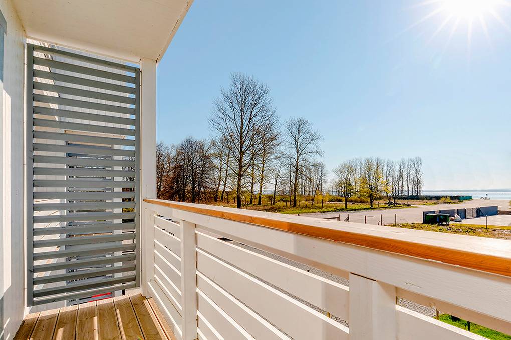 PL 61.5 Ferienhaus 1-4 Pers.: Niveauvolles, schönes 3-Zimmer-Reihenhaus mit 45 qm Wohnfläche über 2 Etagen. Parterre: Wohn-/Essraum mit schöner Holzbalkendecke, Couchgarnitur, Flachbild Sat-TV, Esstisch, Küchenzeile (2 Induktionsplatten, Mikrowelle, Tiefkühlfach 30 l). 1. Etage: Doppelzimmer mit Balkon, schönem Wasserblick aus der 2. Häuserreihe. 2-Bettzimmer. Modernes Bad: ebenerdige Dusche, Wb, WC. Terrasse mit Sitzmöbeln.