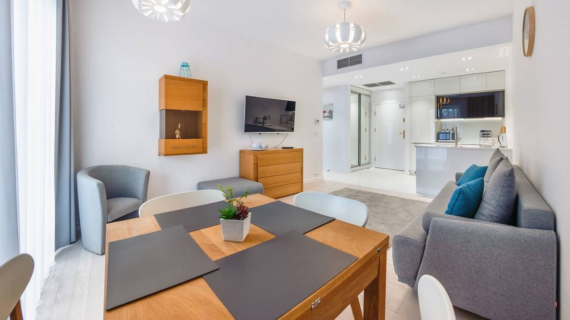Zu den gewählten Apartments darf man mit dem Hund ankommen. Die zusätzlichen Kosten des Aufenthalts mit einem vierbeinigen Freund betragen 100 PLN (Einzelgebühr). Die Gäste, die den Aufenthalt mit dem Hund planen, bitten wir um eine frühere Kontaktaufnahme mit unserem Service im lokalen Büro.