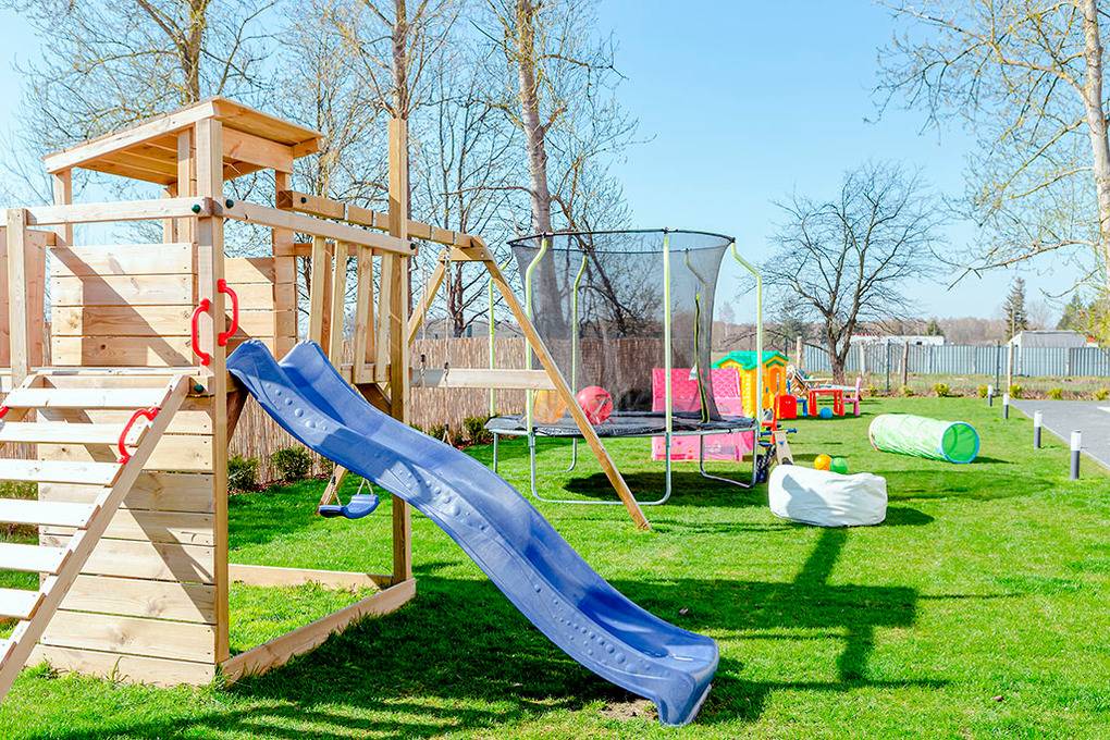 In der Anlage: Sauna. Grillplatz. Kleiner Spielplatz mit Trampolin, Schaukel, Rutsche, Sandkasten zur gemeinschaftlichen Nutzung.