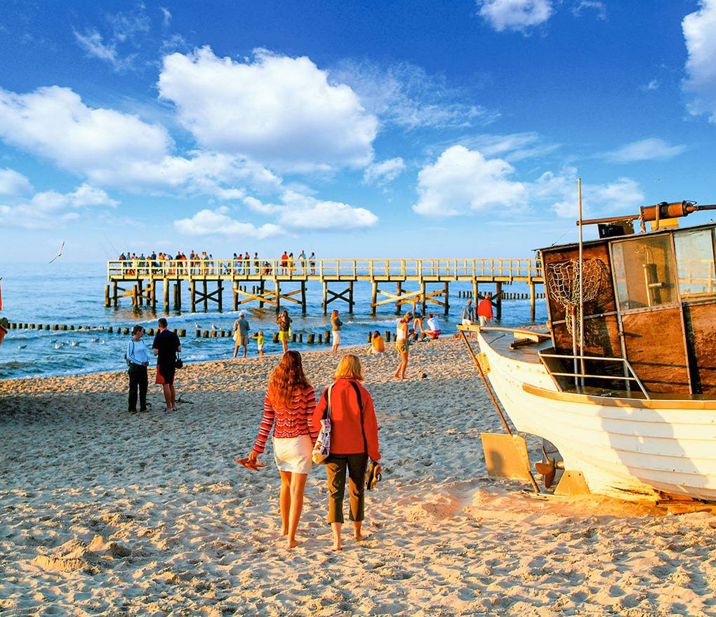 PL 61.6 Ferienhaus 1-4 Pers.: Gepflegtes 3-Zimmer-Reihenhaus mit 45 qm Wohnfläche über 2 Etagen. Parterre: Wohn-/Essraum mit schöner Holzbalkendecke, Couchgarnitur, Flachbild Sat-TV, Esstisch, Küchenzeile (2 Induktionsplatten, Mikrowelle, Tiefkühlfach 30 l). Modernes Bad: ebenerdige Dusche, Wb, WC. 1. Etage: Doppelzimmer mit Balkon. 2-Bettzimmer. Terrasse mit Sitzmöbeln.