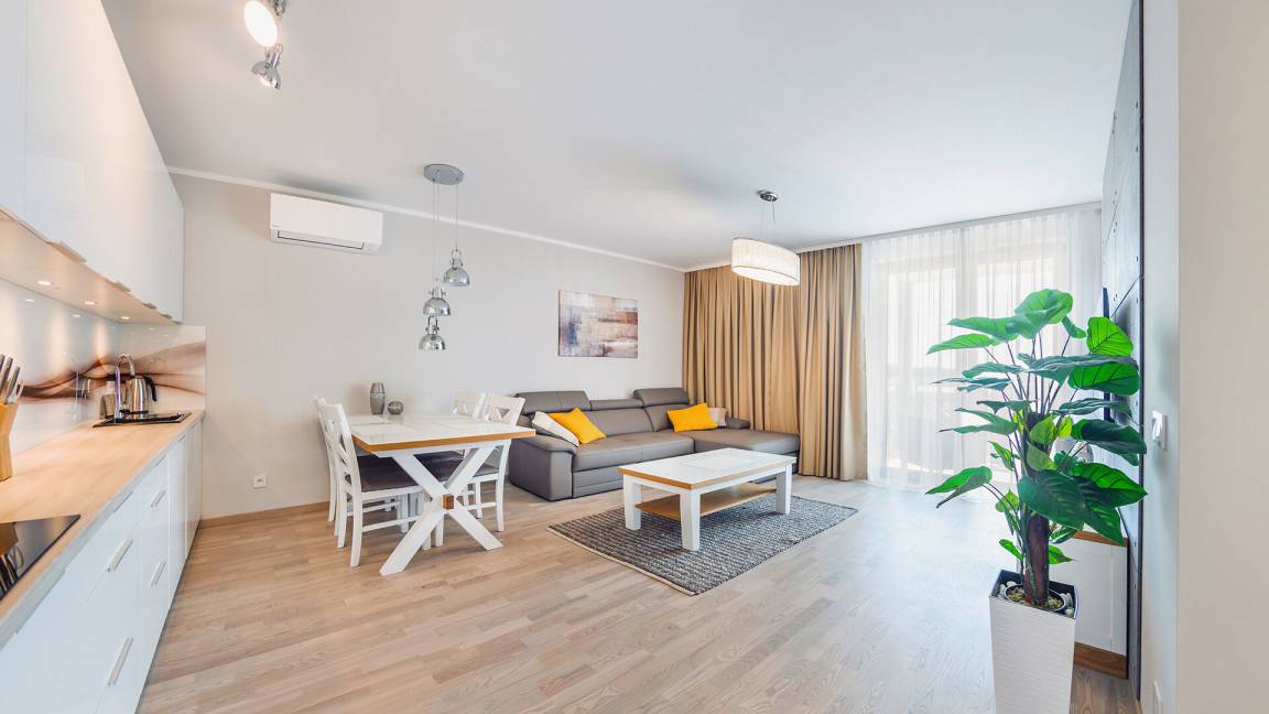 Zu den gewählten Apartments darf man mit dem Hund ankommen. Die zusätzlichen Kosten des Aufenthalts mit einem vierbeinigen Freund betragen 100 PLN (Einzelgebühr). Die Gäste, die den Aufenthalt mit dem Hund planen, bitten wir um eine frühere Kontaktaufnahme mit unserem Service im lokalen Büro.