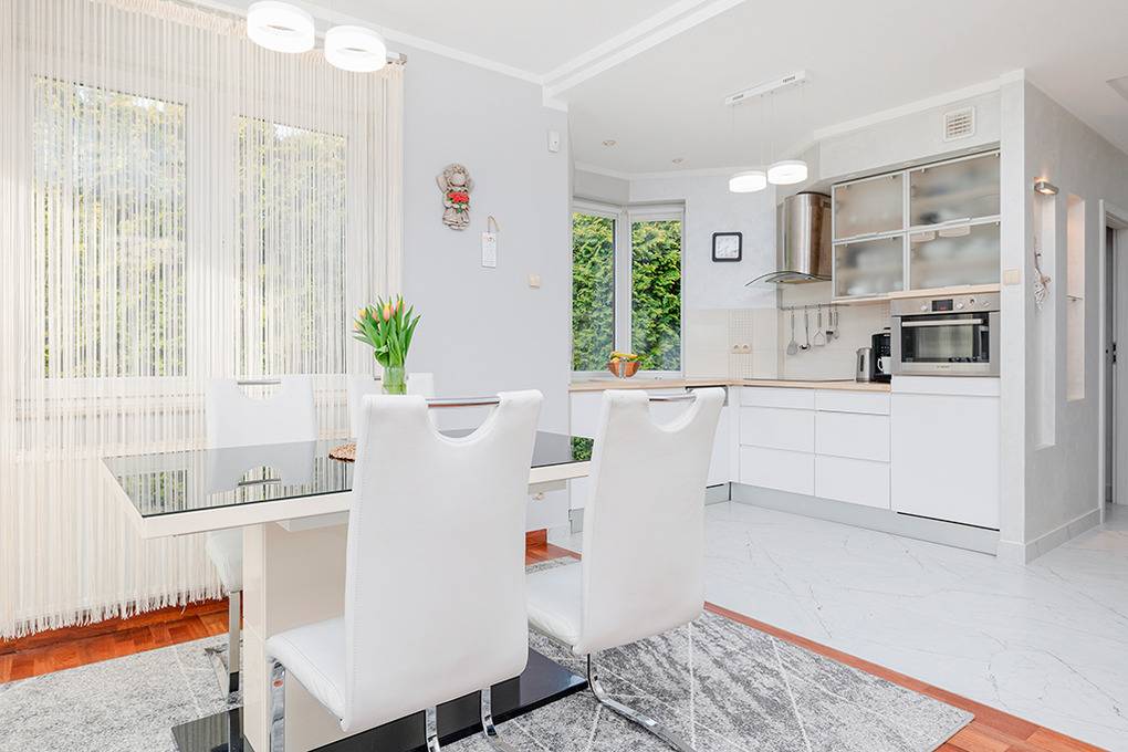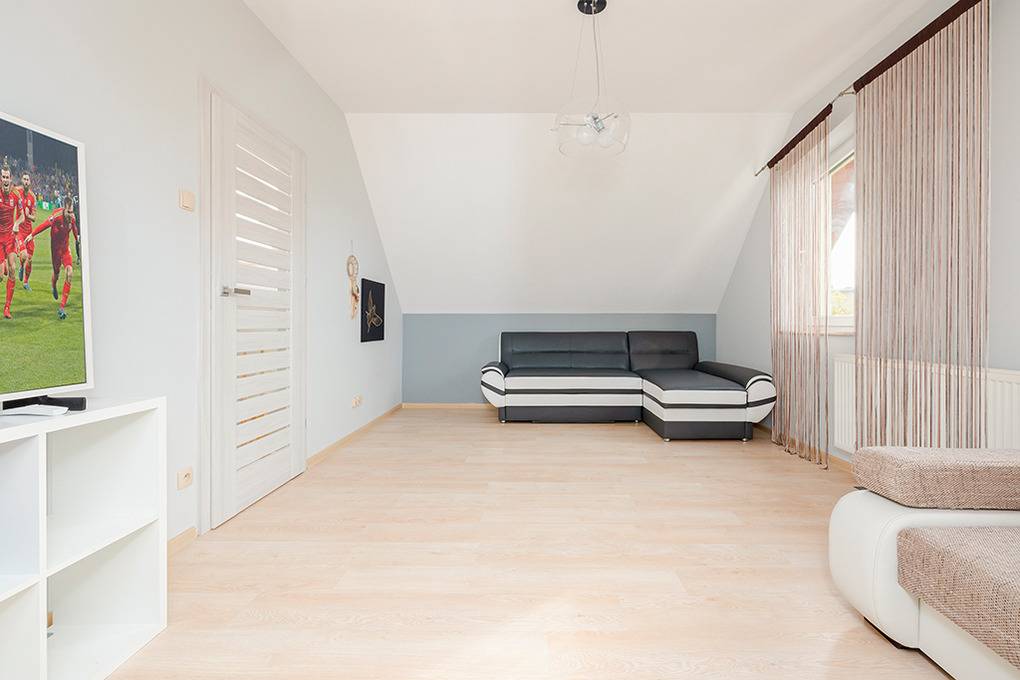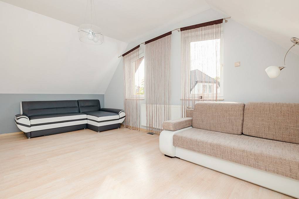 Ort: Ostseebad Mielno. Ruhige Lage in einer Wohnsiedlung. Ostseestrand 750 m. Ortsmitte 850 m. Einkaufmöglichkeiten 350 m.