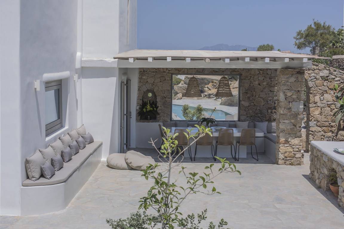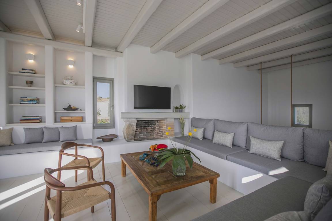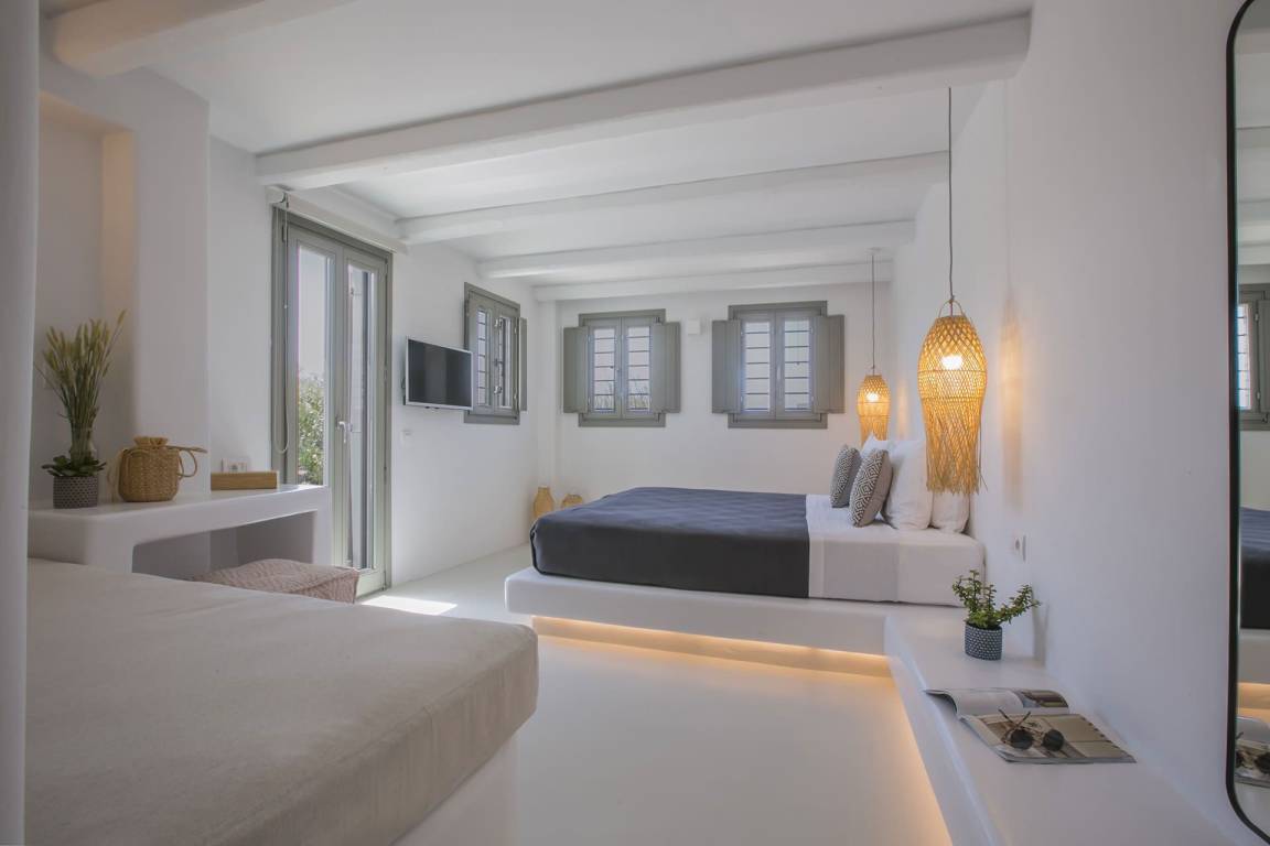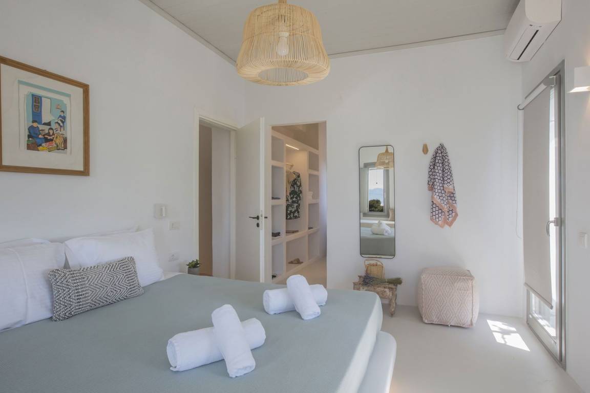 Villa Ermione umfasst 6 Schlafzimmer und 6 Bäder und bietet Platz für bis zu 12 Gäste auf mehreren Geschossen. Jedes Schlafzimmer ist mit einem eigenen Bad ausgestattet. Die Schlafbereiche sind über mehrere Etagen verteilt und schaffen ein Gleichgewicht zwischen gemeinschaftlichen Wohnbereichen und privaten Räumen. Die Schlafzimmer sind elegant möbliert und bieten eine ruhige Atmosphäre. Die Wohn- und Essbereiche sind großzügig gestaltet und dienen als Mittelpunkt der Villa, wo Gäste zusammenkommen, speisen und Zeit miteinander verbringen können. Die Villa bietet von verschiedenen Punkten aus Ausblicke auf den Sonnenuntergang.
