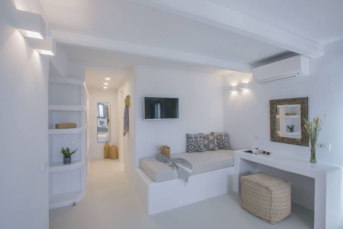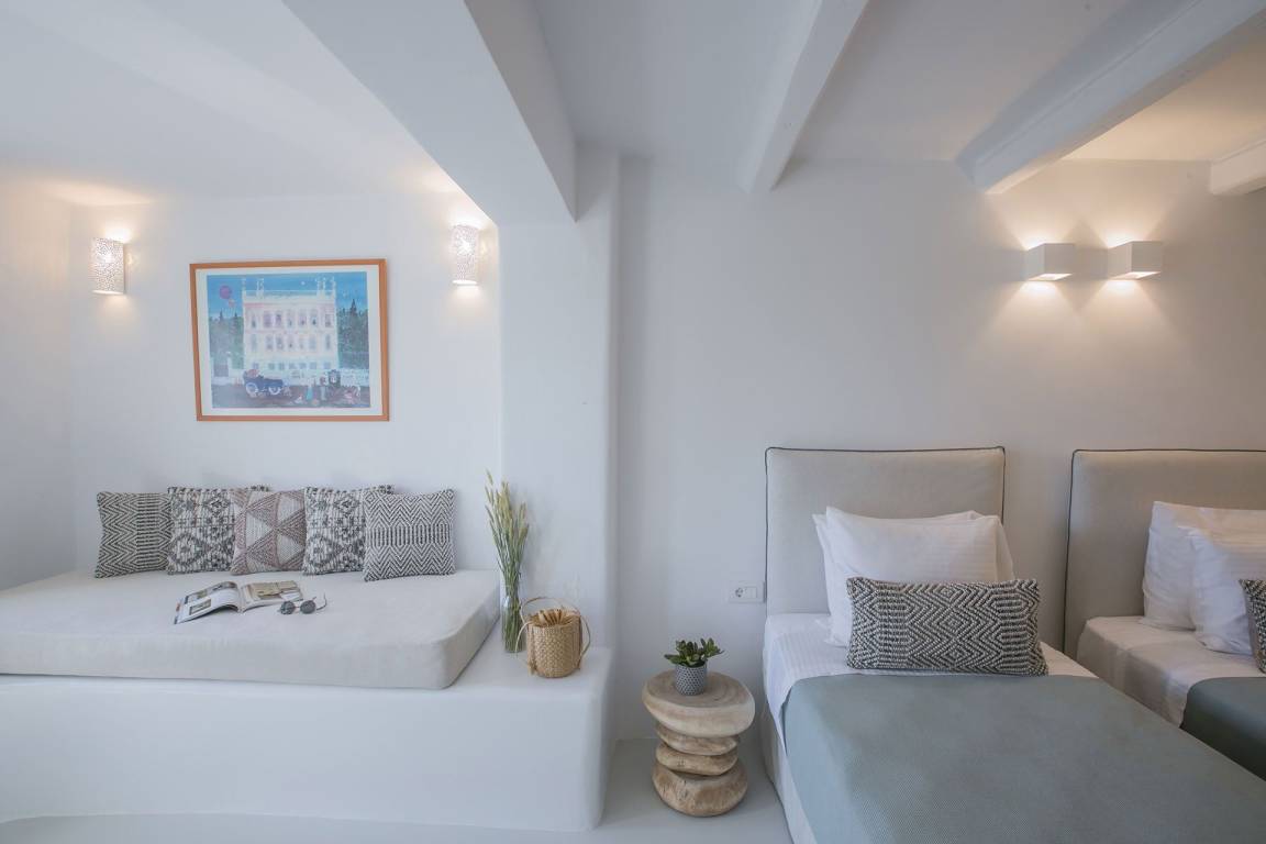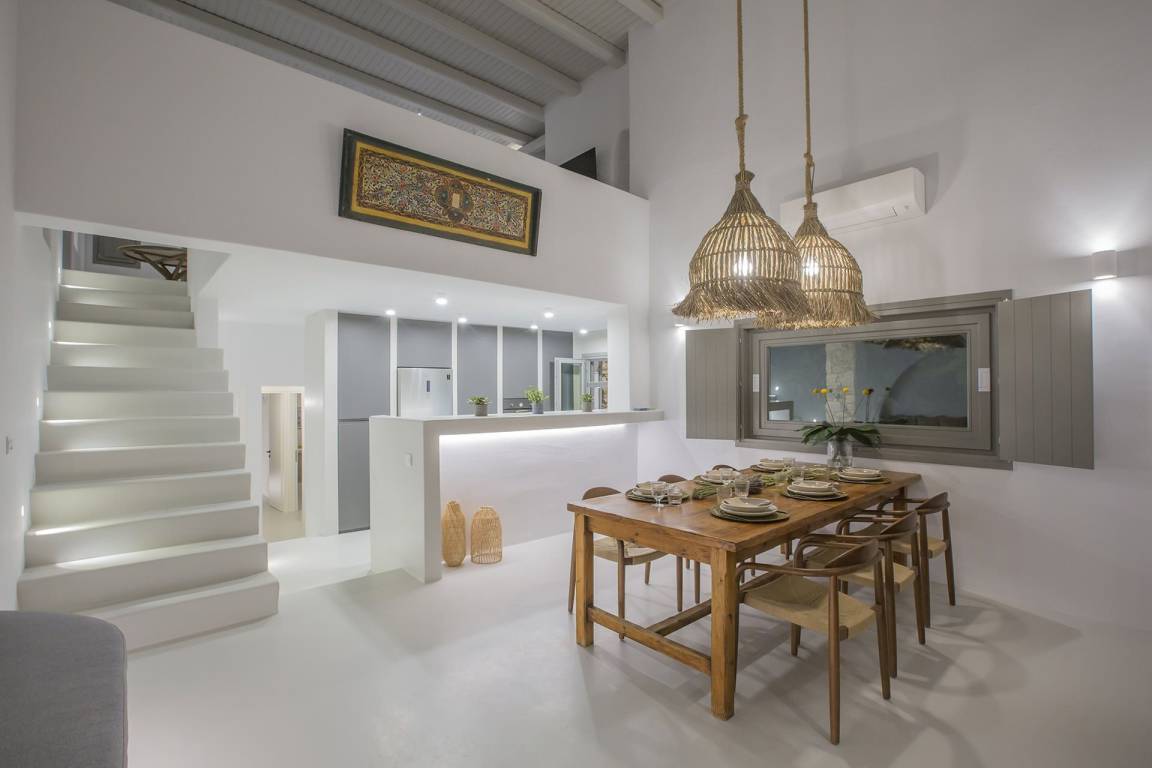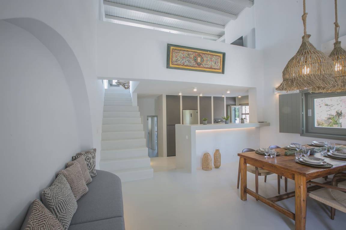 Villa Ermione umfasst 6 Schlafzimmer und 6 Bäder und bietet Platz für bis zu 12 Gäste auf mehreren Geschossen. Jedes Schlafzimmer ist mit einem eigenen Bad ausgestattet. Die Schlafbereiche sind über mehrere Etagen verteilt und schaffen ein Gleichgewicht zwischen gemeinschaftlichen Wohnbereichen und privaten Räumen. Die Schlafzimmer sind elegant möbliert und bieten eine ruhige Atmosphäre. Die Wohn- und Essbereiche sind großzügig gestaltet und dienen als Mittelpunkt der Villa, wo Gäste zusammenkommen, speisen und Zeit miteinander verbringen können. Die Villa bietet von verschiedenen Punkten aus Ausblicke auf den Sonnenuntergang.