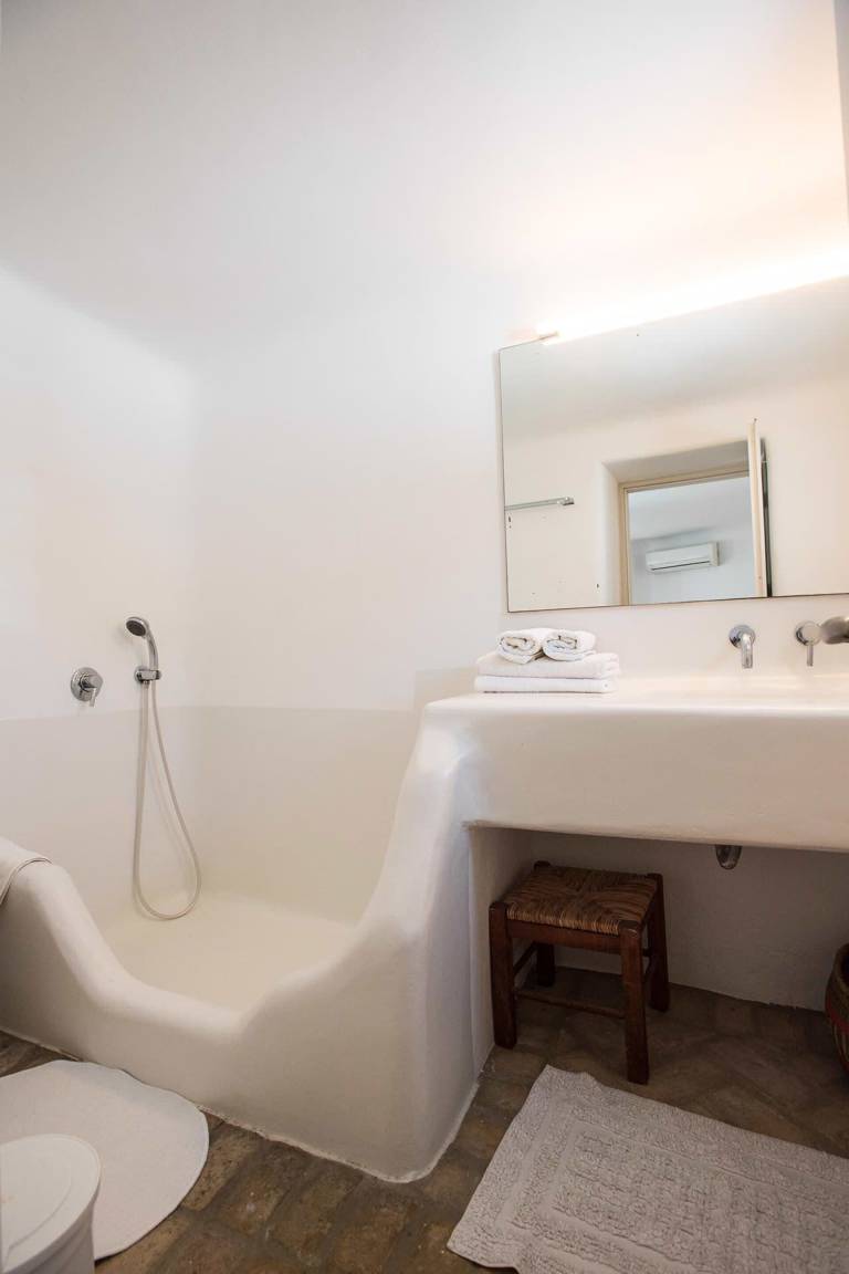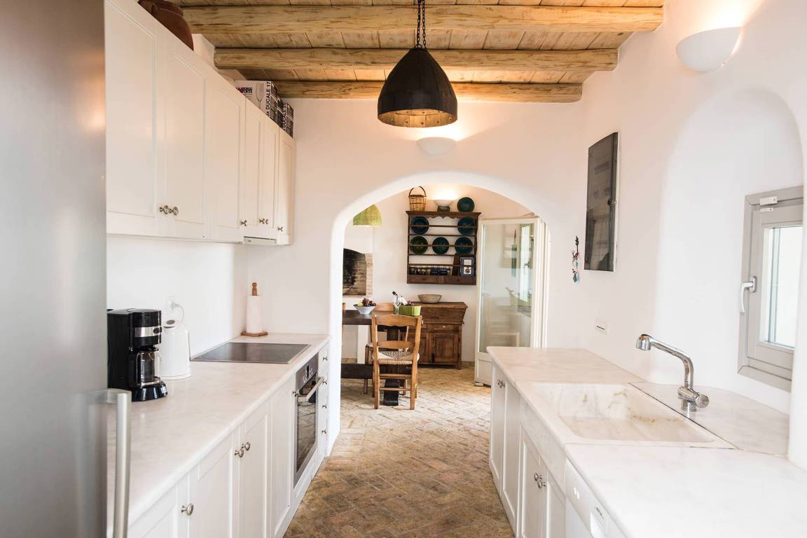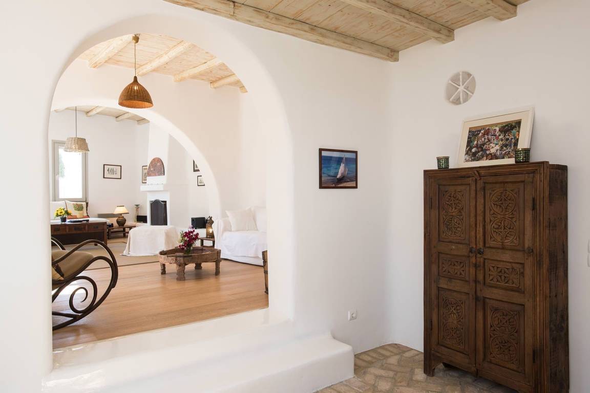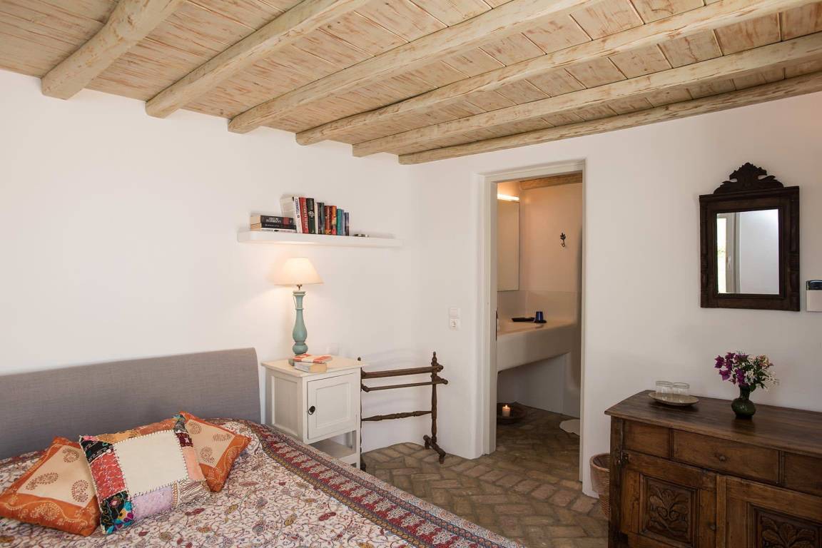 Die Villa erstreckt sich über mehrere Ebenen und bietet Platz für bis zu 10 Gäste in 5 Schlafzimmern und 5 Bädern. Die Schlafzimmer sind mit Bettenkonfigurationen für Paare und Familien ausgestattet. Die Wohnbereiche sind offen gestaltet und verbinden das Innere nahtlos mit den Außenbereichen. Die erhöhte Lage der Villa ermöglicht natürliche Lichtzufuhr und Meerblick aus den Haupträumen.