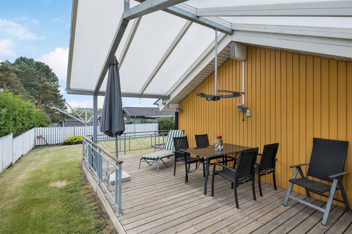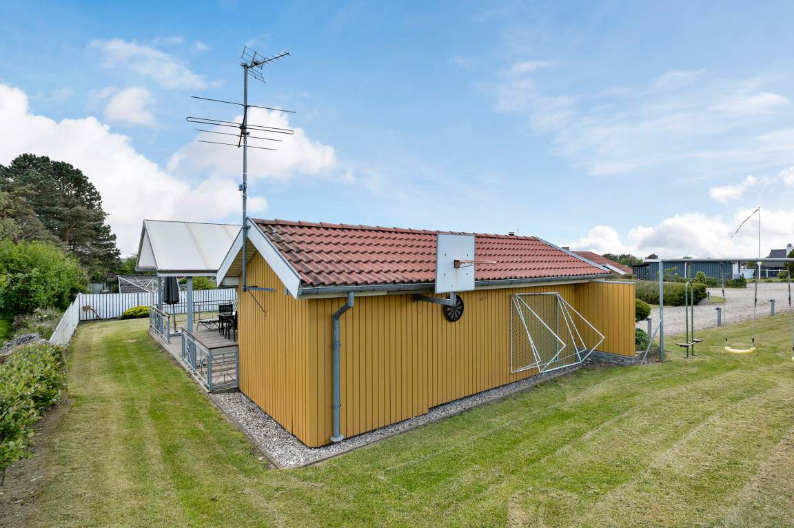 DraußenDie Ferienunterkunft liegt auf einem 900 m² großen Gartengrundstück. Die Entfernung zum Meer beträgt 400 m. Es gibt einen Badesteg in der Nähe. Die nächste Einkaufsmöglichkeit liegt 3000 m entfernt. Es steht ein 60 m² Terrassenareal zur Verfügung. Außerdem gibt es 40 m² überdachte Terrasse. Schaukel. Sandkasten. Fußballtor. Es steht ein Grill zur Verfügung. Es steht ein Carport zur Verfügung. Parkplatz auf dem Grundstück.