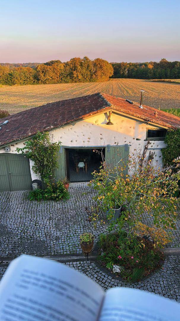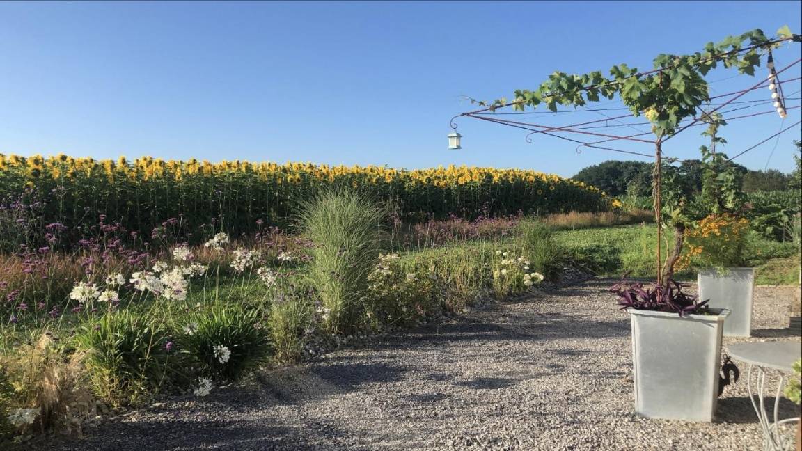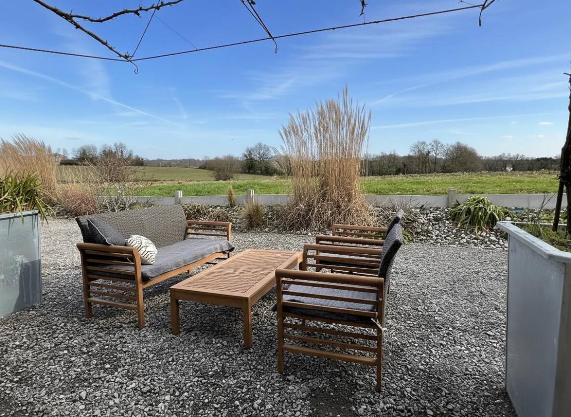 Draußen genießen Sie privaten Zugang zu einem Garten mit Gartenmöbeln (italienische Markise), von dem aus Sie die atemberaubenden Sonnenaufgänge über den Feldern bewundern können. Der Blick ist unverbaut (je nach Ernte) und nicht einsehbar.