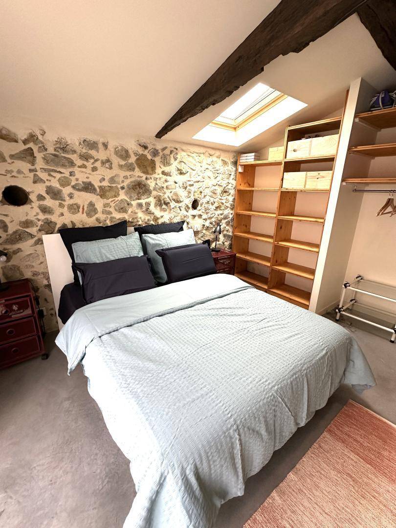 Sie wohnen in der Ferienwohnung „Lou Sarrat", einem komplett renovierten, ebenerdigen Einfamilienhaus, das den ursprünglichen historischen Charme des Gebäudes (ehemals ein Stall) bewahrt hat: freiliegende Steinwände, Balken und hohe Decken.