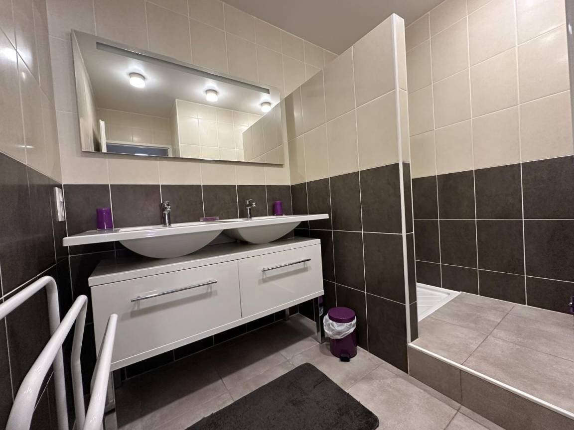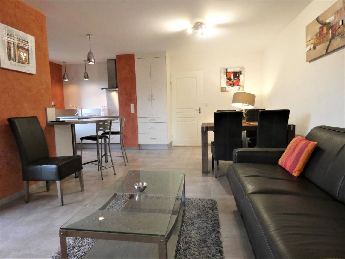 „Résidence récente, proche du centre bourg, nombreux commerces accessibles à pieds, mais très calme. Appartement spacieux, lumineux très bien conçu. Très bien équipé, meubles et appareils de qualité, il ne manque rien. Merci pour le petit cadeau de bienvenue dans le frigo.“