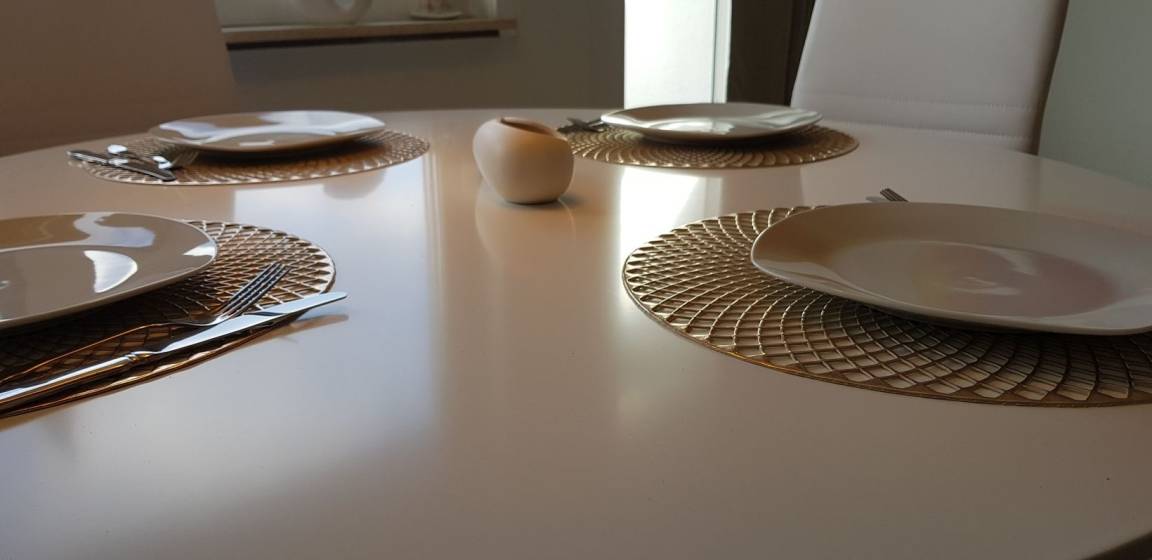 Der helle, lichtdurchflutete Essbereich bietet ausreichend Platz für 3-4 Personen.