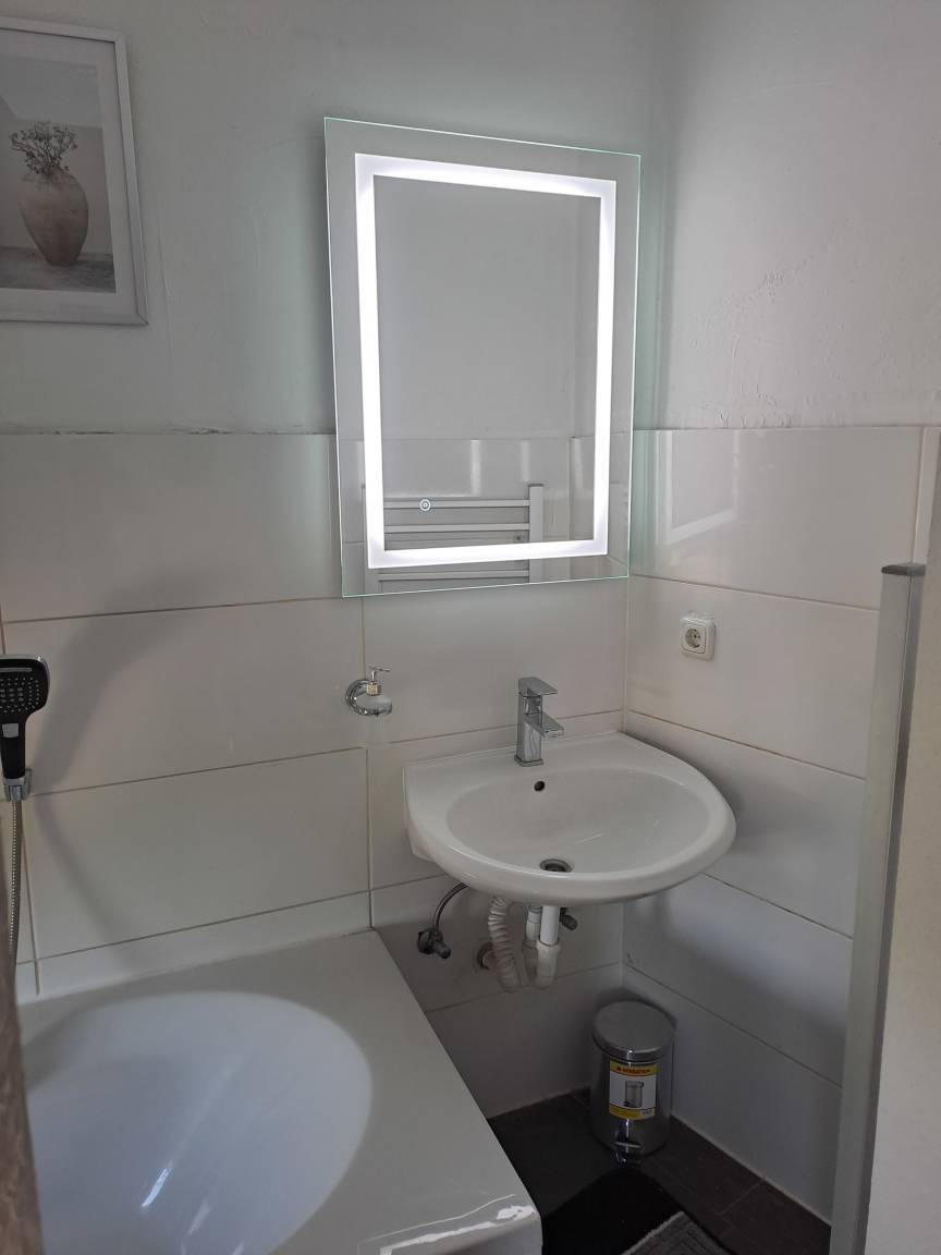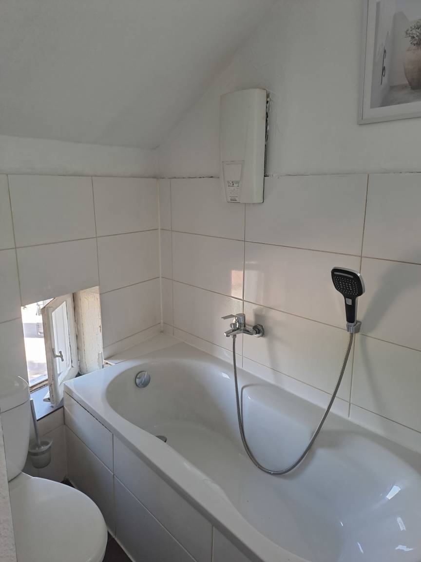 Apartment im Dachgeschoß ca. 500 Meter vom Hauptbahnhof entfernt. Es gibt ein Schlafzimmer sowie eine Küche mit Essplatz und ein Badezimmer mit Duschwanne.