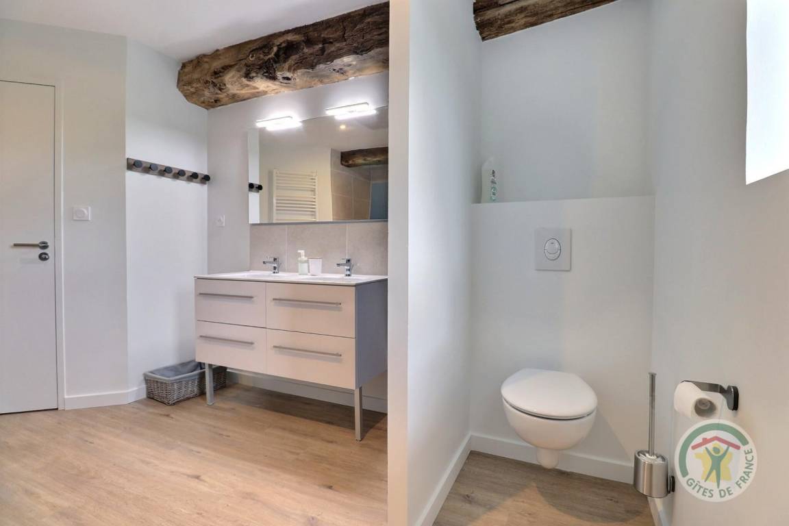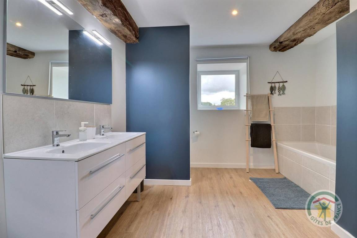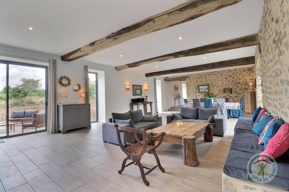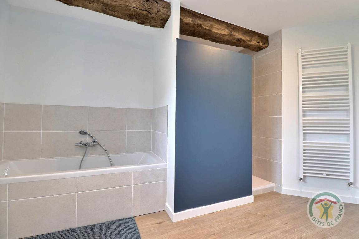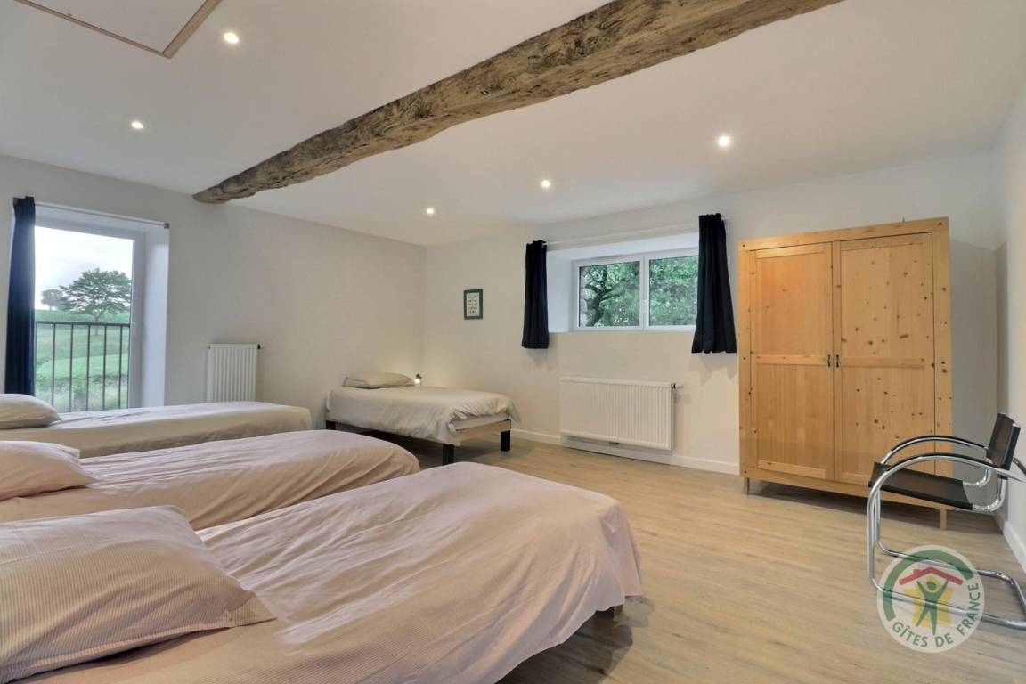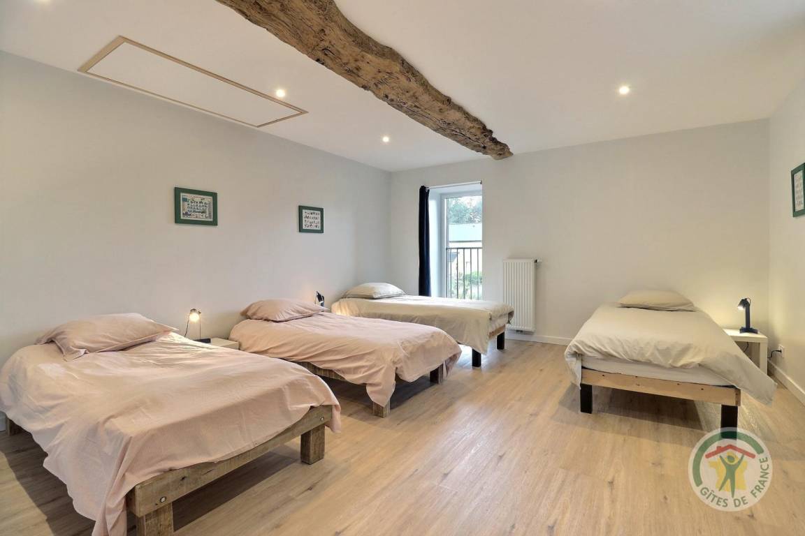 „This gite is ideal for a large group. The bedrooms are a good size and the beds are very comfortable. Nathalie arranged the beds according to our wishes. A number of permutations appears possible. There is ample seating and three dining options, although we settled on the kitchen table and benches as the best option for children. The kitchen is well-equipped. There ought to be a sticker above the plug for the fridge/freezer so no one disconnects it by accident! The kitchen area in particular can be echoey and therefore a bit of a problem when lots of conversations happen at the same time. Otherwise, no problems. Lots of living room space. Funny to see children playing cards on the floor. The TV is small, but who watches TV on holiday? We were amused to have half a dozen adults in one corner of the room watching the Olympics once the children were in bed, with the sound down partly because some of us didn’t have very good French and the pundits are boring in any language anyway. A handbasin in the upstairs toilet would have been useful. The garden was fine for play although a bit bumpy for football, especially for older adults who should not compete with children at sports. Nathalie made us very welcome and we had a great time in the area. We only had one beach day with parking problems: The roads were not busy.“