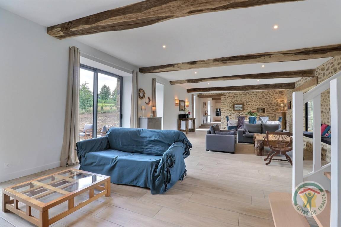 „Gîte très spacieux, parfaitement équipé et décoré avec goût. Nous avons passé un agréable séjour, en famille, à la campagne et au calme.“