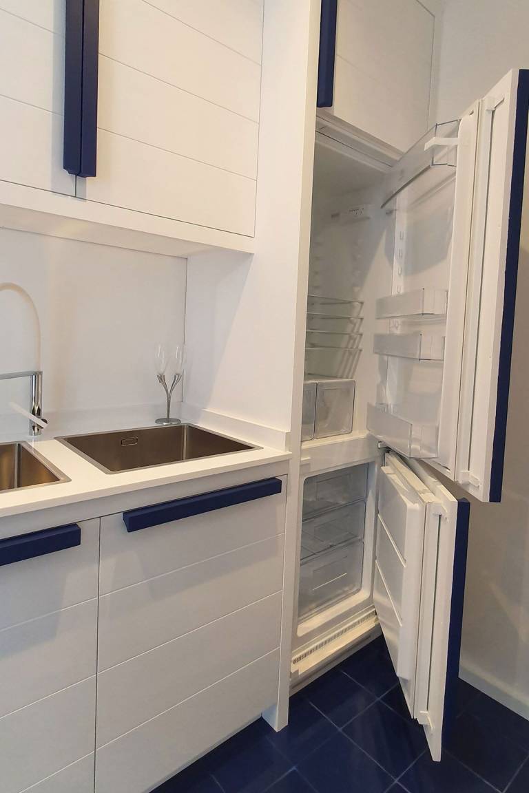 Die Küche ist mit einer Mikrowelle und einer Geschirrspülmaschine ausgestattet. Die Ferienwohnung verfügt über Klimaanlage und Heizung; eine Waschmaschine steht zur Verfügung. Im Wohnbereich befindet sich ein Fernseher mit Satellitenempfang. Die Terrasse ist mit Meerblick vorhanden.