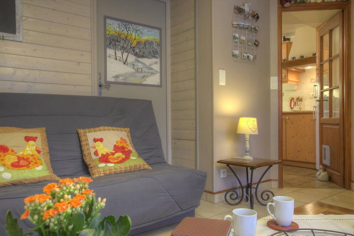 Die Dombes-Unterkunft befindet sich im Erdgeschoss des Hauses des Eigentümers und verfügt über einen separaten Eingang. Diese Touristenunterkunft bietet einen gemütlichen und hellen Raum, der sorgfältig eingerichtet ist und eine warme und entspannende Atmosphäre schafft. Sie verfügt über ein Wohnzimmer mit einem Schlafsofa (140 x 190 cm), eine voll ausgestattete Küche, ein separates Schlafzimmer mit zwei Einzelbetten (90 x 190 cm) und ein Badezimmer mit integriertem WC.