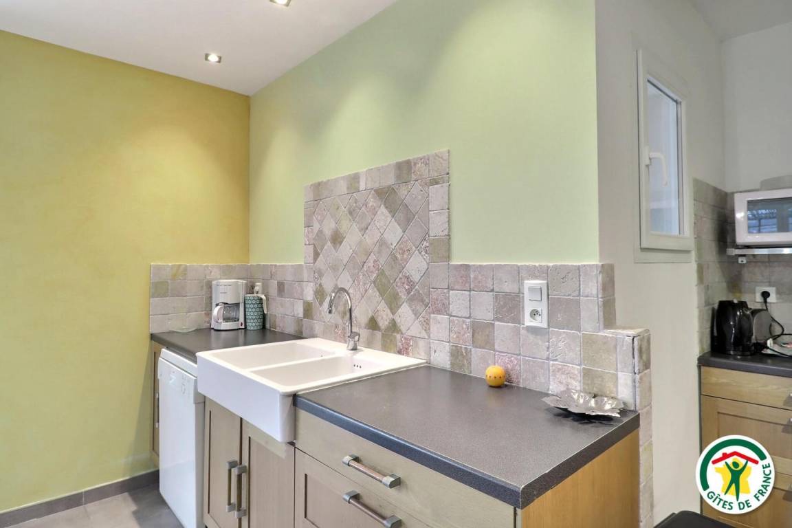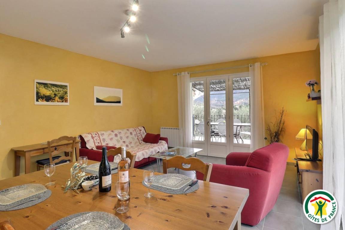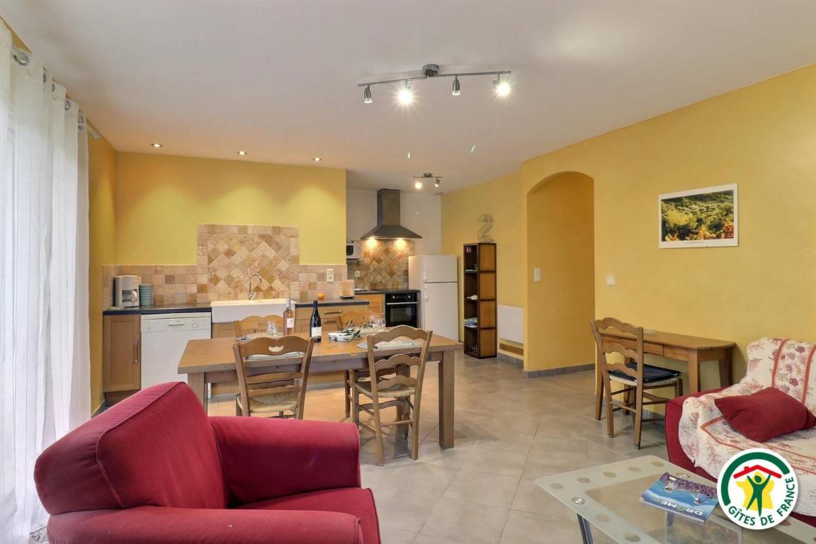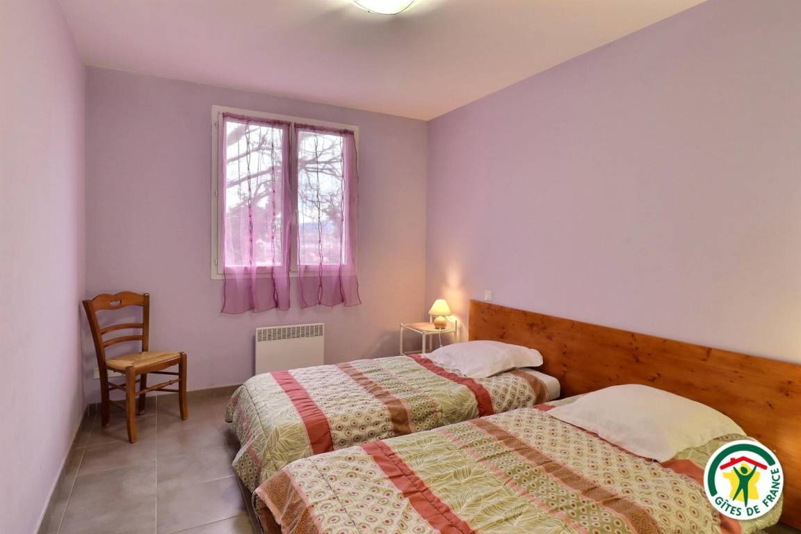 Willkommen in Le Cigalon, einem der drei Ferienhäuser des Anwesens. Die beiden nebeneinanderliegenden Häuser sind geschickt angeordnet, um jedem Gast Privatsphäre zu garantieren. Über ein paar Steinstufen erreichen Sie das Ferienhaus, das auf einer Ebene 60 m² Wohnfläche bietet. Mittelpunkt ist ein helles, 30 m² großes Wohnzimmer mit zwei nach Südosten ausgerichteten Fenstertüren. Es verfügt über zwei Schlafzimmer (eines mit einem 160x200 cm großen Bett und das andere mit zwei 90x190 cm großen Betten), ein Badezimmer mit ebenerdiger Dusche und ein separates WC. Draußen erwartet Sie ein offener Garten mit Olivenbäumen, eine gemütliche, 15 m² große Terrasse mit Pergola, die absolute Privatsphäre und Schatten spendet, sowie ein freier Blick auf das Dorf und die provenzalischen Baronnies. Gemeinsam mit uns und den beiden anderen Ferienhäusern stehen Ihnen eine Garage für Fahrräder und Motorräder, ein Mokkakolo, eine Boulebahn und ein Swimmingpool zur Verfügung