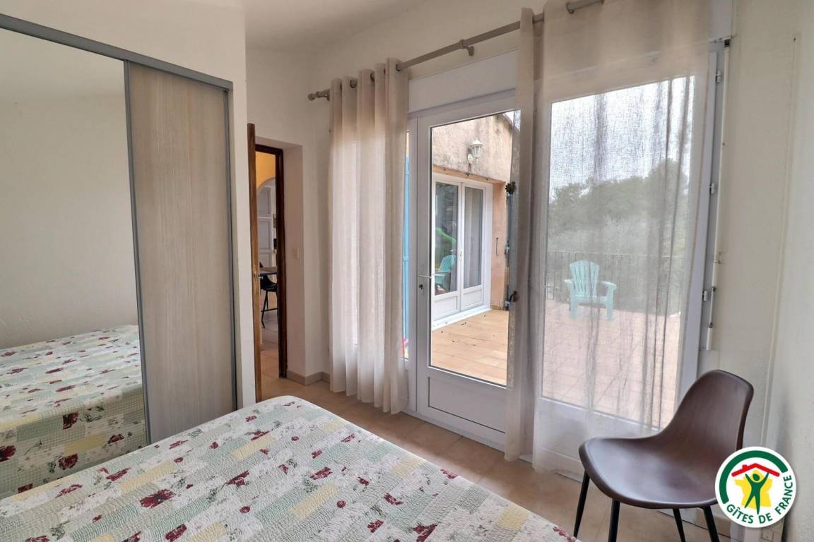 Innen: Die Treppe mit Geländer (18 Stufen) führt zur Terrasse und zur gläsernen Eingangstür, die zum Wohnzimmer führt. Der Flur führt zu den 2 Schlafzimmern, dem Badezimmer und der separaten Toilette. Draußen nur für Sie: Südterrasse mit Pergola, Grill, Garten mit Spielen für Kinder. Zur gemeinsamen Nutzung mit uns und unseren 2 anderen Unterkünften: Garage zum Abstellen von Fahrrädern und Motorrädern, Schwimmbad geöffnet von Mai bis Oktober (durch einen Zaun nach aktuellen Standards gesichert, Abmessungen: 14 m x 5 m, Tiefe 1,20 bis 1,70 m). Unser Anwesen liegt auf den Anhöhen des Dorfes, nur 500 m vom Zentrum entfernt und bietet einen atemberaubenden Blick auf das Dorf. Die Gîte Olives grenzt an die Gîte Raisins und unsere Garage, Sie haben jedoch einen separaten Eingang.